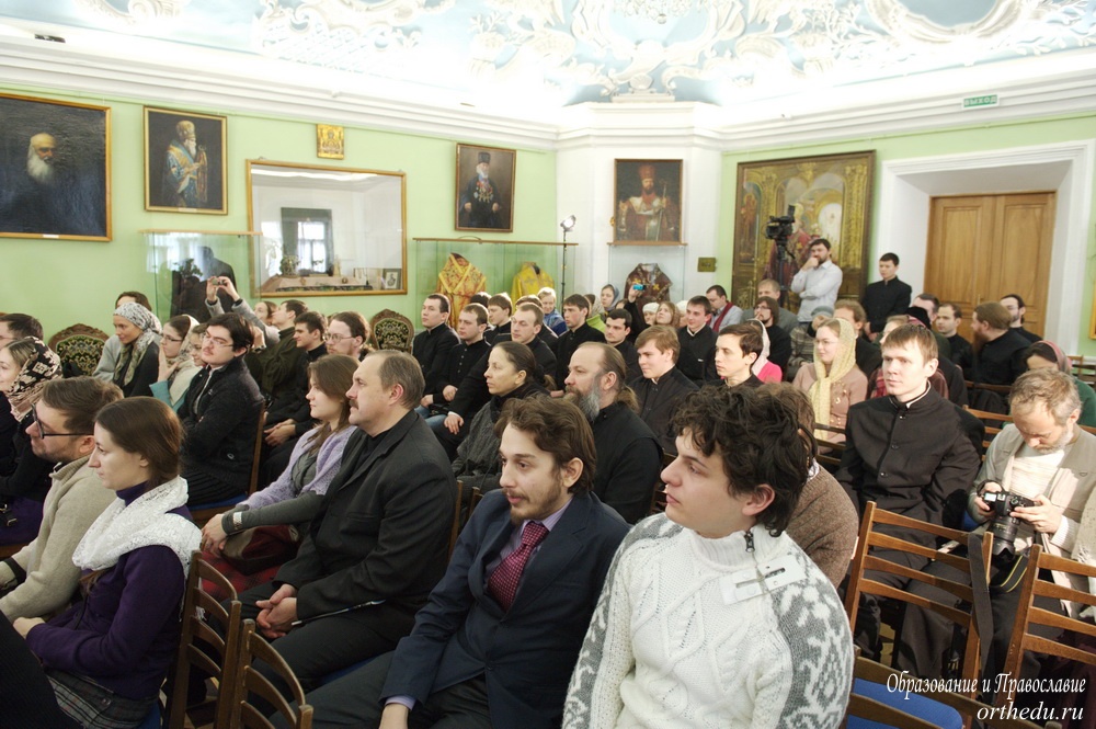 В Московской духовной академии состоялось открытие дискуссионного арт-клуба с участием Бориса Гребенщикова4 февраля 2012 года в Московской духовной академии состоялось открытие дискуссионного арт-клуба с участием Бориса Гребенщикова. В мероприятии участвовали студенты семинарии, академии, регентской и иконописной школ, а также члены профессорско-преподавательской корпорации. В ходе встречи Борис Гребенщиков вместе с музыкантами группы «Аквариум» исполнил несколько авторских произведений, которые сопровождались живой беседой между композитором и собравшимися. Среди острых вопросов, заданных известному музыканту – духовный опыт в традиции Православной Церкви и религиозные практики буддизма и индуизма, сосуществование различных духовных традиций, особый путь русской культуры, место музыки в современном мире, исключительность богооткровенной христианской религии. Особое внимание Борис Гребенщиков в своих ответах уделил роли музыки в своем духовном опыте и значению православной веры в его жизни. По материалам встречи на официальном сайте МДА и портале Богослов.Ru будет опубликована видеозапись и расшифровка беседы.