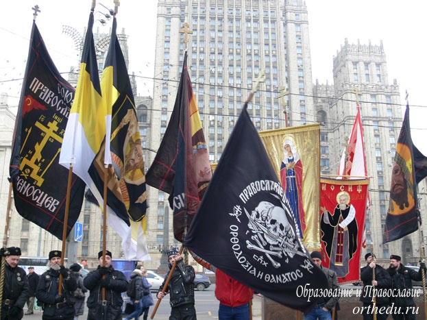 Перед зданием Министерства иностранных дел прошел пикет18 марта 2012 года Союз Православных Хоругвеносцев (СПХ) совместно с представителями Совета Синодального отдела по взаимодействию Церкви и общества Московского Патриархата провёл пикет у Министерства иностранных дел РФ против гонений на христианство в мире. Фоторепортаж Сегодня мы переживаем новую эпоху гонения на христиан. Жители благополучных стран ничего не знают или не хотят знать об этом и принадлежат пока к «молчаливому большинству». Между тем, каждый год 105 тыс. христиан умирают насильственной смертью в результате межрелигиозных конфликтов. Намеренное замалчивание масштабов преследований в ряде стран арабского мира стало неотъемлемой частью политики западных держав. Информация, которую мы получаем из СМИ, умышленно подается в превратном ключе, чтобы не дать людям шанса помешать политике сильных мира сего, для которых экономические интересы всегда оказываются важнее общечеловеческих ценностей, включая право на свободу вероисповедания. «Арабская весна» серьезно сказалась на положении местных христиан: Египет – поджоги коптских церквей и погромы христианских кварталов. Ливия – активное вытеснение христиан после свержения режима Муаммара Каддафи. Тунис – приход к власти радикалов и захват христианских храмов с целью обращения их в мечети. Алжир – запрет на открытие храмов, принятие закона запрещающего миссию среди мусульман. Ирак к 2006 году покинула половина христианского населения, в стране продолжаются теракты у храмов. Эскалация гражданской войны в Сирии подвергает крайней опасности религиозные меньшинства, включая христиан. Пакистан являет собой пример полного бесправия христианского населения, его положение сегодня можно назвать катастрофическим и оно продолжает ухудшаться. Проживающие в Афганистане христиане вынуждены скрывать свои убеждения, не имеют легальной возможности открывать храмы, а церковные службы проводят на территории частных домов. Радикалы стоят за преследованиями христиан Судане, Нигерии и Сомали. В странах Аравийского полуострова христианство находится под запретом. Политика нетерпимости и религиозной дискриминации проводится властями ряда государств Юго-Восточной Азии: Мальдивы, Бангладеш, Малайзия, Индонезия, Филиппины, Мьянма, Лаос – страны, где в той или иной мере нарушаются права христиан. Особую озабоченность вызывает положение 23 миллионов христиан в дружественной России Индии, где ежегодно тысячи верующих подвергаются нападениям со стороны радикально настроенных индуистов. Не прекращаются массовые убийства, погромы храмов и домов, при этом власти страны зачастую попустительствуют нарушениям прав верующих. В некоторых индийских штатах действуют законы, запрещающие индуисту переходить в другие религии, а способствующих этому наказывают штрафами и тюремным заключением. По данным правозащитных организаций, оппозиционная индуистская националистическая «Индийская народная партия», имеющая представительство в парламенте Индии и фактически руководящая несколькими штатами, не только открыто борется с христианством, но и выступает за принудительное изучение в школах одного из главных текстов индуизма – «Бхагават Гиты». Вызывает обеспокоенность неприкрытые действия экстремистов по воспрепятствовани