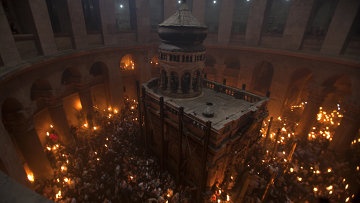 Благодатный огонь сошел в храме Гроба Господня в ИерусалимеИЕРУСАЛИМ, 14 апр - РИА Новости. Благодатный огонь, символизирующий нерукотворный свет Воскресения Христова, о котором говорил еще апостол Петр, сошел в храме Гроба Господня в Иерусалиме. Огонь появился, как и в предыдущие годы, в Кувуклии - часовне внутри храма Гроба Господня, над каменным ложем, на котором покоилось в Великую субботу погребенное Тело Христа. Именно там по вековому ритуалу молится о схождении Благодатного огня православный патриарх. Согласно древнему церемониалу, перед входом в Кувуклию одеяния патриарха Феофила III и сама часовня были тщательно осмотрены на предмет наличия каких либо средств для искусственного получения огня. Ожидание огня после того, как патриарх Иерусалимский зашел в Кувуклию, в этом году заняло чуть более 10 минут. Верующие, собравшиеся в переполненном храме, обрадованные появлением святого огня, стали умывать им лицо и поздравлять друг друга с Пасхой. В храме Гроба Господня присутствовало много русскоязычных паломников из России, Украины и других стран, поэтому часто своды храма оглашались возгласом "Христос воскрес". Как только ежегодно ожидаемое в канун Пасхи чудо произошло, патриарх Иерусалимский передал огонь столпившимся у Кувуклии верующим. В их числе и делегация Фонда Андрея Первозванного, которая доставит Благодатный огонь спецрейсом из Иерусалима в московский аэропорт Внуково-1, а затем в храм Христа Спасителя - на ночное пасхальное богослужение патриарха Московского и Всея Руси Кирилла. Примечательно, что мусульмане также признают божественную сущность огня, происхождение которого до сих пор не объяснено наукой. Они присутствуют в иерусалимском храме Гроба Господня вместе с христианами и уносят частицы Благодатного огня домой. Литания Самое раннее упоминание о схождении Святого огня в канун Воскресения Христова (Пасхи) датируется IV веком. Церемония получения Благодатного огня (литания) начинается с раннего утра и состоит из целого ряда ритуалов, включая осмотр и опечатывание Кувуклии. Раньше это делали турецкие стражники (Палестина входила в состав Османской империи), теперь - полиция. Старшины православной арабской молодежи, сидя на плечах друг у друга и скандируя "нет веры, кроме веры православной, Христос - истинный Бог", просят Господа даровать верующим Благодатный огонь. Считается, что Спаситель приемлет и такое, несдержанное, по-детски наивное, но чистосердечное обращение. Внутри храма также проходят торжественные процессии армянского, коптского и сирийского духовенства. Их традиционно сопровождают каввасы - стражники в турецкой форме, которые с древнейших времен нанимались для охраны христианских процессий. По мере продвижения сквозь толпу каввасы стучат специальными посохами о каменные плиты храма. Их действия, наряду с шумным поведением православных арабов, создают неповторимую атмосферу ритуального праздника. В полдень от Иерусалимской патриархии начинается Крестный ход к Гробу Господню, который завершается перед входом в Кувуклию. В нее вносят большую лампаду, в которой должен возгореться огонь и 33 свечи (по числу лет земной жизни Спасителя). Иерусалимский патриарх традиционно входит внутрь Кувуклии в одном полотняном подряснике - чтобы было видно, что он не проносит с собой в пещеру спички 