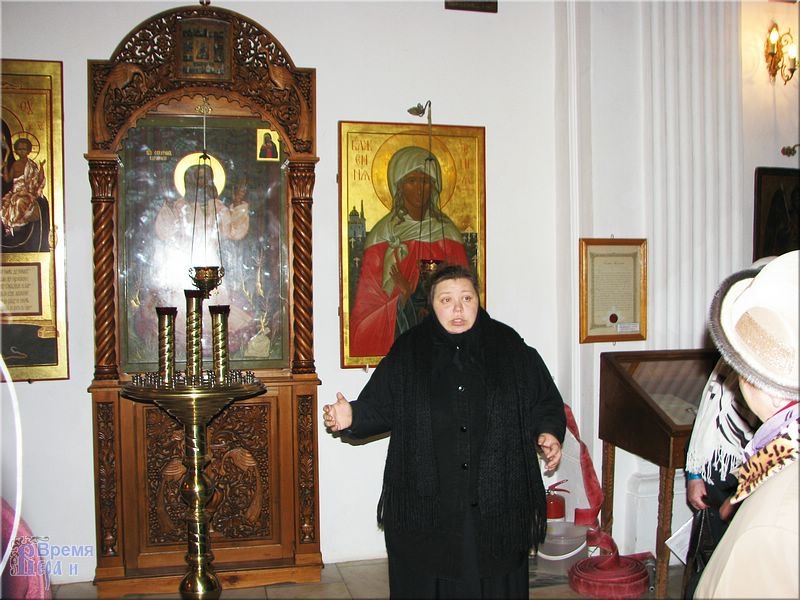 Преподавателей, прежде всего, ознакомили с историей создания храма, жизнь которого, по словам ведущей экскурсию Анны, была тесно переплетена со святыми людьми и подвижниками благочестия, живших в этом месте Москвы, а также с историей стольного града в целом.