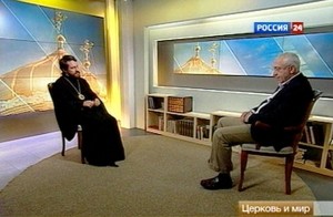 Митрополит Иларион: Межрелигиозная напряженность развивается, прежде всего, на почве невежестваНачиная с сентября нынешнего года, передача «Церковь и мир» на телеканале «Россия 24» выходит в новом формате. Теперь часть программы занимает беседа председателя Отдела внешних церковных связей митрополита Волоколамского Илариона с гостями. 15 сентября 2012 года в программе «Церковь и мир» принял участие член Общественной палаты Российской Федерации, тележурналист и историк, руководитель Института Массмедиа РГГУ Н.К. Сванидзе.