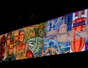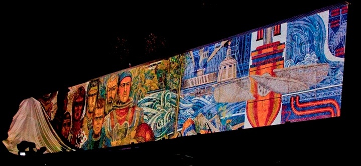 Панно «Покорители Оби» открылось под звон колоколовПоздно вечером 22 сентября в микрорайоне ОбьГЭС торжественно открыли восстановленное мозаичное панно «Покорители Оби». Такой необычное время выбрали специально – Обь окончательно перекрыли в ноябре 1956 года практически ночью.