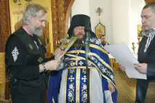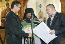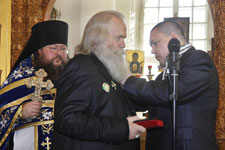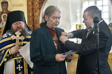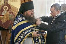 За активную миссионерскую деятельность в России и Зарубежье, личный вклад в объединение Русской Православной Церкви (МП) и Русской Зарубежной Церкви настоятелю храмов Сошествия Святого Духа на Лазаревском кладбище и Всех Московских Святых в Бибирево игумену Сергию (Рыбко) была вручена медаль "Митрополит Лавр", учреждённая в феврале 2009 года в память Первоиерарха Русской Православной Церкви Заграницей митрополита Восточно – Американского и Нью – Йоркского Лавра, его огромной миссионерской деятельности и в ознаменование воссоединения Русской Православной Церкви (МП) и Русской Православной Церкви Заграницей. Также этой почётной медалью за труды во благо Русской Православной Церкви были награждены Координатор Союза Православных Братств Русской Православной Церкви Юрий Николаевич Агещев и Почетный Президент Международной федерации Самбо (FIAS), Председатель Союза Национальных и неолимпийских видов спорта России, Заслуженный тренер РФ Михаил Иванович Тихомиров. Благодарственными грамотами за подписью Владыки Илариона за многолетние труды во славу Русской Православной Церкви, верность историческим традициям Российской Имперской Государственности, активную жизненную позицию были награждены братчики Союза Православных Хоругвеносцев – Заместитель главы СПХ-СПБ, Руководитель Художественной мастерской "Русский Символъ" Игорь Игоревич Мирошниченко, Заместитель главы СПХ-СПБ, Координатор СПХ-СПБ по связям с Украиной (Луганск) и Казачеством Валерий Александрович Левченко, Заместитель главы СПХ-СПБ Владислав Васильевич Куроптев, член СПХ-СПБ, Заместитель главного редактора журнала "Священная Хоругвь" Александр Валерьевич Королев, а также Руководитель Русского Православного Движения "Святая Русь" Иван Александрович Отраковский, Генеральный директор охранного предприятия "Вымпел -Рубеж-1" Заякин Владимир Александрович, Заместитель гендиректора охранного предприятия "Вымпел -Рубеж-1" Сергей Николаевич Агещев. За большие заслуги в возрождении России Нагрудный Знак "Почётный сотрудник Войсковой Православной Миссии" получил лидер рок-группы "Алиса" Константин Евгеньевич Кинчев. Наградной документ подписан Первоиерархом РПЦЗ митрополитом Иларионом и епископом Белевским и Алексинским Серафимом. Директор рок-группы "Алиса" Рябов Михаил Викторович также получил Благодарственную грамоту от Первоиерарха РПЦЗ. В связи с невозможностью их личного присутствия на награждении Начальником Войсковой Православной Миссии было принято решение поручить передачу им данных заслуженных наград в ближайшее время игумену Сергию (Рыбко). От Общероссийской организации "Федерация союза казаков" и Войсковой Православной Миссии особой наградой - орденом "Благоверного царя Иоанна Грозного" - за большой вклад в служении Отечеству был удостоен Глава Союза Православных Хоругвеносцев, Председатель Союза Православных Братств Леонид Донатович Симонович-Никшич. По окончании торжественной части состоялась праздничная трапеза, на которой участники смогли побеседовать, поделиться своими мыслями, переживаниями о сложившейся сегодня антицерковной экспансии на Русскую Православную Церковь, в частности нападками на игумена Сергия (Рыбко) после его призывов к активной защите наших православных святынь, о русском народе и будущем России. Служ
