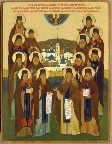 давать направление стопам своим» (Иер. 10, 23). В жизни Оптинских старцев особенно ясно и явно были видны знаки Божественного Промысла, ведшего их к великому делу пастырского окормления тысяч монашествующих и мирян накануне грозных бурь XX века. При всем многообразии их судеб (а среди Оптинских старцев были люди разного звания и происхождения) мы видим и некие их общие отличительные черты. Так, все Оптинские старцы происходили из благочестивых православных семейств и имели в роду молитвенников, сами с детства любили молитву и Божий храм, на всех них уже с раннего возраста лежала печать особого избранничества, а обстоятельства их жизни складывались так, что все они рано или поздно, в соответствии с их собственными стремлениями, должны были оказаться в благословенной Оптиной пустыни. *** У преподобного Макария прадед был иноком. Семья будущего старца часто посещала монастырские службы и окормлялась у монашествующего духовника, архимандрита Феофана. Позднее преподобный Макарий писал о монастырях: «Обиталища сии – монастыри – не изобретение человеческого ума, но Дух Святой, через богодухновенных Отцов, установил жительство сие для тех, кто позван будет Богом или из любви к Нему, или по причине множества грехов своих». Иеросхимонах Макарий (Иванов) (1788-1860)А отвечая на вопрос одной женщины – своего духовного чада, почему, находясь в миру, она испытывала спокойствие, а в монастыре это спокойствие сменилось на духовную брань, старец разъяснял: «Хорошо, что ты познала, что спокойствие, на которое ты опиралась в мире, непрочно и ненадежно. А притом и то знай, что ты, живя в монастыре, находишься на поприще брани, как духовный воин, и раны принимаешь, и венцов сподобляешься, а удаляясь с сего поприща, уже и не имеешь брани, и мнишь, будто имеешь спокойствие, но оно ложно, ибо скоро может превратиться в свирепую бурю. Итак, благодари Бога, призвавшего тебя на сей путь и обучающего во бранях». Отец преподобных Моисея и Антония, Иван Григорьевич, строго соблюдал посты и часто посещал храм Божий, пел на клиросе, был очень умён и начитан, особенно любил читать Священное Писание, церковную историю, жития святых и исторические книги. Работал отец сборщиком налогов у хозяина-откупщика, и честность его была так очевидна, что хозяева в течение нескольких лет повысили ему плату от двухсот до тысячи двухсот рублей в год после того, когда Иван Григорьевич обзавёлся семьёй. Мать преподобных Моисея и Антония, Анна Ивановна, была благочестива, милостива к нищим и беднякам, смиренна, усердна к молитве. Дети её вспоминали, как часто их мать по ночам молилась Богу. С семилетнего возраста она почти ежедневно ходила к обедне в монастырь, в котором жил её родной дедушка, иеродьякон, старец маститых лет. Схиигумен Антоний (Путилов) (1795—1865)Когда она приносила гостинец дедушке, он каждый раз говорил ей о сокровище. Когда Анна Ивановна спрашивала: «Где же сокровище? Ибо у вас в келье нет и сундучка», старец отвечал, что это сокровище лежит под престолом Божиим. Лишь много лет спустя она поняла, что старец предугадывал её счастливую семейную жизнь и то, что три её сына будут в монашеском чине настоятелями и наставниками. И действительно, все сыновья стали священнослужителями и после смерти отца, на его простом мраморном памятнике, у алтаря церкви Всех Святых, написали, что памят