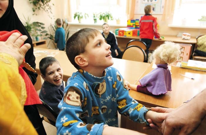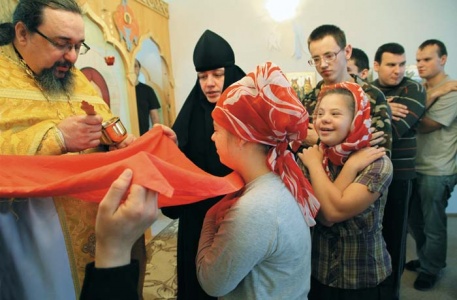 Посмотри им в глазаЗаписки священника о жизни наизнанку Чему могут научить священника обитатели детского дома, да еще не простого, а коррекционного? Что дает ему многолетняя дружба с умственно отсталыми детьми? И вообще, какую помощь могут оказать больные — здоровым? Об этом рассказывает иерей Игорь Йовбак, настоятель храма в честь иконы Божьей Матери «Милостивая» при Полотняно-Заводском доме-интернате в деревне Старки Калужской области. Все началось с джаза, как это ни странно звучит. Самая первая наша беседа с директором детского дома, Натальей Александровной, была краткой и очень располагала к тому, чтобы оказаться последней. Наталья Александровна за чашкой чая сказала без обиняков: «Короче, нам этого всего не надо. Не надо никаких батюшек. Мы уже насмотрелись на них, живем рядом с ними, видим, как они ведут себя. Так что, не обижайтесь, но...» Что на это ответить? Я грустно прихлебывал чай и косил глазом на шикарный синтезатор, стоявший в углу директорского кабинета. Не удержался — спросил, откуда инструмент. Она почему-то смутилась и сказала, что раньше была директором школы искусств. А я не преминул похвастаться, что у меня тоже музыкальное образование и я тоже люблю Рахманинова и Дебюсси. Попросил разрешения, сел за клавиши и сыграл что-то джазовое, кажется пьесу Дэйва Брубека. Ну и, конечно, после этого разговор у нас пошел совсем по-другому: родственные же души оказались, музыканты же оба! Оказалось, что она вовсе не против священников и храма в детском доме. Просто, когда мы начали беседу, она не верила, не могла поверить, что это вообще можно осуществить на практике. Там же полная разруха была постсоветского периода, когда никому ничего не надо было, все заброшено, рушилось потихоньку. Старые здания со сгнившими коммуникациями, с разваливающимися стенами, вываленными дверями, разбитыми окнами... Вот так все и началось. Мы в тот раз, после чая и джаза, отслужили первый свой молебен. И стали вместе молиться, чтобы Господь как-то управил со строительством храма при детдоме. И нашлись люди, которые проявили желание нам помочь. Да и как могло быть иначе? Это ведь не обычный детский дом. Наши дети… Они прекрасные просто. Они нас могут даже большему научить, чем мы их. Там такая чистота души проявляется, такая искренность… Тот, кто с ними хотя бы раз пообщался, уже никогда не будет прежним. *** Вообще, известный многим батюшкам практический вопрос: как исповедовать этих ребят? На мой взгляд — никак. Потому что это — младенцы. Несмотря на то что некоторым из них уже по 20 лет, взрослые вроде бы юноши. Тем не менее у них сознание трехлетних детей, а младенцев не исповедуют. Хотя я никогда не отказываю, если кто-то из них подходит исповедаться. Но это совсем другое сознание, не то что у обычных взрослых людей или подростков. Однажды я сидел в коридоре на диванчике, ко мне подошел мальчик и спросил: «Батюшка, если я загляну в совесть, в душу Христа, и посмотрю, что там есть, это хорошо или плохо?» Я говорю: «Конечно, хорошо. Ты только когда посмотришь в душу Христа, не забудь поделиться впечатлениями со мной, потому что мне тоже интересно, что ты там увидишь». А он посмотрел на меня, оглянулся, чтобы удостовериться, что никого рядом не было, и тихонечко на ухо сказал: «Я тебе не расскажу. Я тебе нарисую пророческие рисунки». *** Для людей, сомневающихся в вере