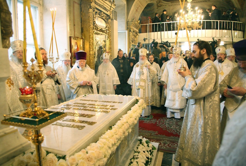 В годовщину со дня кончины Святейшего Патриарха Алексия II Предстоятель Русской Церкви совершил Божественную литургию и панихиду5 декабря исполнился год со дня кончины Святейшего Патриарха Московского и всея Руси Алексия II. В Богоявленском кафедральном соборе Москвы, где погребен приснопамятный пятнадцатый Предстоятель Русской Православной Церкви, Святейший Патриарх Московский и всея Руси Кирилл совершил Божественную литургию, сообщает пресс-служба Патриарха Московского и всея Руси. Среди молящихся в соборе были представитель Патриарха Антиохийского и всего Востока при Патриархе Московском и всея Руси архиепископ Филиппопольский Нифон, наместники и настоятельницы монастырей, председатель Синодального информационного отдела В.Р. Легойда, директор художественно-производственного предприятия Русской Православной Церкви «Софрино» Е.А. Пархаев, президент Международного фонда единства православных народов профессор В.А. Алексеев, руководитель Церковно-научного центра «Православная энциклопедия» С.Л. Кравец, другие руководители церковных учреждений. За Божественной литургией были совершены молитвы «об упокоении души усопшего раба Божия приснопамятного Патриарха Алексия». В проповеди перед причастием протоиерей Борис Левшенко, клирик храма святителя Николая в Кузнецах, поделился своими воспоминаниями о служении Святейшего Патриарха Алексия II в качестве правящего архиерея Таллинской епархии. По окончании Божественной литургии Святейший Патриарх Кирилл обратился к участникам богослужения с Первосвятительскиим словом, посвященном памяти почившего Предстоятеля. «Сегодня мы отмечаем годовщину со дня кончины приснопамятного Святейшего Патриарха Алексия, — сказал, в частности, Святейший Владыка. — Жизнь и смерть человека — в руках Божиих. От нас не зависит рождение — пришествие в этот мир — и от нас не зависит переход в мир иной. Господь каждому из нас дает сроки жизни и каждого из нас призывает к жизни в то время и в ту эпоху, которая для нас в соответствии с Божиим замыслом приуготована. Святейший Патриарх Алексий родился и жил в сложную историческую эпоху. Его пребывание на Патриаршем престоле пришлось на время коренных перемен не только в жизни нашего Отечества, но в жизни многих и многих стран, и Церковь как органическая часть народа была вовлечена в эти события». «В день годовщины со дня преставления Святейшего Патриарха Алексия мы возносим о нем молитвы, дабы Господь простил его грехи вольные и невольные, принял его в Небесное Царство и сотворил вечную молитвенную о нем память в сердцах наших», — сказал Святейший Патриарх Кирилл. Затем Предстоятель Русской Православной Церкви и сослужившие Его Святейшеству иерархи прошли в Благовещенский придел собора, где у гробницы Святейшего Патриарха Алексия была совершена панихида.