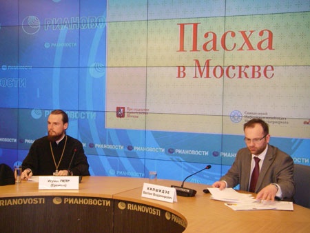 Празднование Пасхи в Москве станет общегородским торжествомВ этом году празднование Пасхи в Москве выйдет из храмовых дворов на улицы и площади и станет общегородским. Более 200 пасхальных мероприятий пройдут на 80 столичных площадках: в парках, музеях, кинотеатрах и культурных центрах. Обширная программа праздника стала плодом совместной деятельности Русской Православной Церкви и Департамента культуры Московского правительства. Об идее такого праздника и ее воплощении на пресс-конференции в РИА Новости 29 апреля рассказали ректор Российского православного университета им. св. Иоанна Богослова, наместник Высоко-Петровского монастыря игумен Петр (Еремеев) и ответственный сотрудник Синодального информационного отдела (СИНФО) Московского патриархата Вахтанг Кипшидзе.