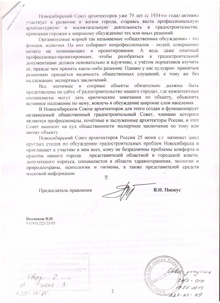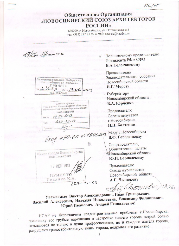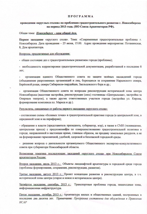 Новосибирские архитекторы обсудят градостроительную политику в городе25 июня в 15.00 в Новосибирском союзе архитекторов (по адресу ул. Потанинская, 8) состоится круглый стол, посвященный «Современным градостроительным проблемам Новосибирска». Архитекторы, чиновники и депутаты обсудят градостроительную ситуацию в городе и необходимость корректировки документации. Новосибирский союз архитекторов обратился к исполнительной и законодательной власти области и города, Общественной палате с предложением обсудить градостроительные проблемы и наметить пути их решения. Архитекторы намерены провести серию круглых столов, на которых планируют рассмотреть различные аспекты градостроительной политики и конкретные «болевые точки» градостроительной практики. По итогам круглых столов будут выработаны предложения по совершенствованию градостроительной политики и законодательных актов. В своем обращении к представителям исполнительной и законодательной власти, общественности (см. Приложение) новосибирские архитекторы указывают на то, что «грубые нарушения в застройке города отзываются острой болью в душе не только профессионалов, но и каждого жителя города, разрушают градостроительную ткань города, подрывая его развитие». Также архитекторы указывают на необходимость заранее представлять общественности значимые и спорные проекты, а компетентные специалисты должны иметь возможность дать критические замечания по подобным объектам. На предстоящий круглый стол архитекторы приглашают представителей областной и городской власти, депутатского корпуса, специалистов в области здравоохранения, экологии, природоохраны, а также представителей средств массовой информации.