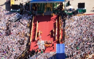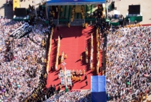 Предстоятели Поместных Православных Церквей совершили Божественную литургию на Минском ЗамчищеЦерковные торжества в честь 1025-летия Крещения Руси из Москвы и Киева переместились столицу Белоруссии. 29 июля 2013 года Святейший Патриарх Московский и всея Руси Кирилл совместно с Предстоятелями и представителями Поместных Православных Церквей отслужил Божественную литургию на Минском замчище, где в XI веке был основан первый храм города Минска. Торжественное богослужение совершили Блаженнейший Патриарх Александрийский и всей Африки Феодор II, Блаженнейший Патриарх Иерусалимский и всей Палестины Феофил III, Святейший Патриарх Московский и всея Руси Кирилл, Святейший Патриарх Сербский Ириней, Блаженнейший Архиепископ Новой Юстинианы и всего Кипра Хризостом II, Блаженнейший Митрополит Варшавский и всей Польши Савва, Блаженнейший Митрополит всей Америки и Канады Тихон, а также митрополит Мексики, Центральной Америки, Карибов и Венесуэлы Антоний, глава делегации Антиохийского Патриархата; митрополит Филипский, Неапольский и Фасосский Прокопий, глава секретариата по межправославным связей Священного Синода Элладской Православной Церкви, глава делегации Элладской Православной Церкви; митрополит Корчинский Иоанн, глава делегации Албанской Православной Церкви, архиепископ Прешовский Ростислав, глава делегации Православной Церкви Чешских земель и Словакии, члены делегаций Поместных Православных Церквей. В числе сослуживших за Божественной литургией были: Патриарший экзарх всея Беларуси митрополит Минский и Слуцкий Филарет; митрополит Крутицкий и Коломенский Ювеналий; митрополит Кишиневский и всея Молдовы Владимир; митрополит Астанайский и Казахстанский Александр, глава Митрополичьего округа в Республике Казахстан; митрополит Ташкентский и Узбекистанский Викентий, глава Среднеазиатского митрополичьего округа; митрополит Саранский и Мордовский Варсонофий, управляющий делами Московской Патриархии; митрополит Волоколамский Иларион, председатель Отдела внешних церковных связей Московского Патриархата, иерархи и духовенство Русской Православной Церкви из России, Белоруссии и других стран. На богослужении в Минском Замчище молились вице-премьер Правительства Белоруссии А.А. Тозик, глава Минского городского исполнительного комитета Н.А. Ладутько, другие официальные лица и множество жителей Минска и гостей города — на торжество собрались десятки тысяч верующих со всей Белоруссии, а также паломники из России, Латвии, Литвы. Во время Литургии звучали возгласы на церковнославянском, греческом, арабском, английском, грузинском и албанском языках. По завершении Божественной литургии был отслужен молебен святому равноапостольному князю Владимиру. Приветственное слово к участникам торжества в честь 1025-летия Крещения Руси обратил Святейший Патриарх Московский и всея Руси Кирилл. Затем прозвучало слово Святейшего и Блаженнейшего Католикоса-Патриарха всея Грузии Илии II. Поздравив всех со знаменательным событием — с 1025-летием Крещения Руси, Святейший и Блаженнейший Владыка напомнил одно из событий Библейской истории, когда святой царь Давид остановил прославлявших его за объединение Израиля, велев: «Скажите народам: Господь царствует» (Пс. 95:10). «И действительно, все, чего достигла Православная Церковь, — это милос