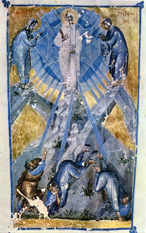 Миниатюра «Преображение Господне»: откровение о фаворском светеСиний, белый, золото – при помощи трех цветов иконописец-виртуоз XIV в. передал божественные нетварные энергии Христа, о которых спорили его современники. О маленьком шедевре византийского искусства из рукописи защитника исихастов императора Иоанна Кантакузина рассказывает Ирина ЯЗЫКОВА При внимательном чтении Евангелия, можно заметить, что сцена Преображения занимает особое место. Во-первых, здесь впервые ученикам Христа открывается Божественная природа Учителя, которого они знали как человека. Во-вторых, это событие происходит накануне страданий Господа, о чем и беседовали с Иисусом пророки — Моисей и Илия. А это значит, на горе Преображении открывается также и тайна человечества Спасителя, которому предстоит умереть. И в-третьих, чудо Преображения приоткрывает нам тайну Троицы. Все три евангелиста сообщают, что на горе был слышен глас Отца, глаголавший: «Сей есть Сын Мой возлюбленный, в Котором Мое благоволение», облако покрыло гору, а лицо и весь облик Христа сиял таким дивным светом, что ученики пали на землю. Глас Отца, человеческий и божественный образ Сына и явление Духа в виде облака явно указывают на Святую Троицу. На службе праздника Церковь поет: «днесь на Фаворстей горе, тайно Троицы образ показуя…» Великий гимнограф древности преп. Ефрем Сирин воспевает это событие так: «Радовались пророки, ибо узрели здесь Его человечество, которого прежде не видели. Радовались и апостолы, ибо узрели здесь славу Его Божества, которого прежде не разумели, и услышали глас Отца, свидетельствующий о Сыне… Тройственное было здесь свидетельство: глас Отца, Моисей и Илия. Они предстояли пред Господом, как служители, и смотрели друг на друга, — Пророки на Апостолов, и Апостолы на Пророков, святой Моисей видел освещенного Симона — Петра, домоправитель, поставленный Отцем, взирал на домоправителя, поставленного Сыном; Ветхозаветный девственник Илия видел новозаветного девственника Иоанна; тот, кто вознесся на огненной колеснице, взирал на того, кто возлежал на пламенных персях Христовых. Таким образом, гора представляла собой Церковь, потому что Иисус соединил на ней два завета, принятых Церковью, и показал нам, что Он есть Податель обоих». В византийском искусстве образ Преображения также занимает особе место. Это не просто один из евангельских сюжетов или двунадесятых праздников, это образ, раскрывающий суть духовной жизни. Особенно это хорошо видно в искусстве XIV века, когда в Византии шли ожесточенные споры о природе Фаворского света. Этому же посвящено и сочинение императора Иоанна Кантакузина, украшенное миниатюрами. На одной из них — Преображение (миниатюра предваряет текст свт. Григория Богослова о Фаворском свете, а на соседней странице изображен сам свт. Григорий, учащий о Преображении). Миниатюру отличает виртуозность исполнения, интенсивный колорит, построенный на сочетании сияния золота и сине-голубой холодной гаммы, композиция вытянутая по вертикали, что позволяет увидеть динамику происходящего. При этом чудо Преображения передано очень эмоционально, все здесь подвижно, диагональные линии пересекаются, складки одежд струятся, словно вся вселенная приведена в движение некой незримой силой. В верхней части мы видим горний мир, где на вершине горы ст