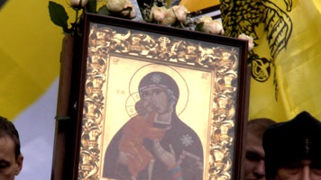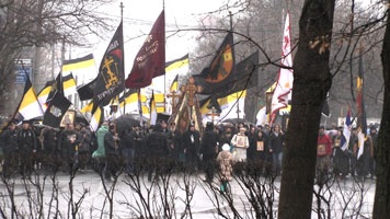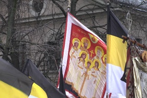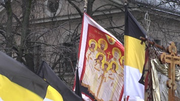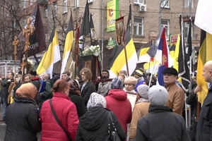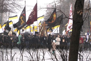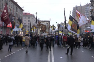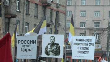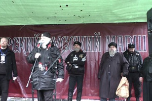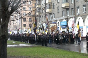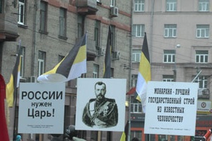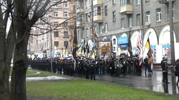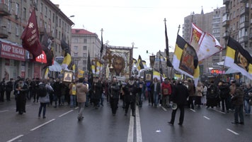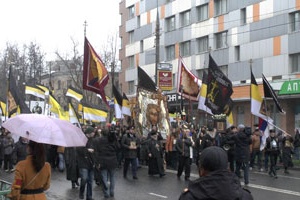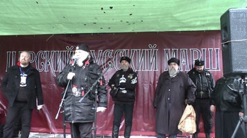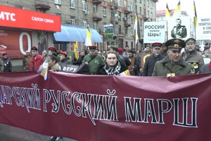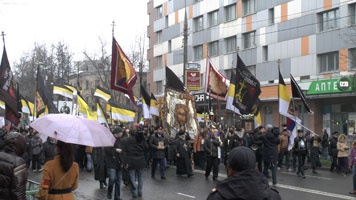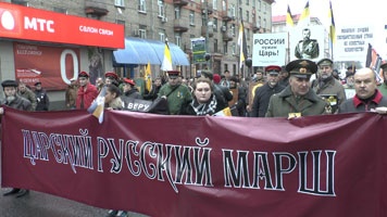 Царский русский маршНесмотря на все сложности и действия вредителей, распространявших информацию о том, что Царского русского марша не будет, он – марш – состоялся 4 ноября 2013 года на праздник Казанской иконы Божией Матери в год 400-летия Дома Романовых. В мероприятии приняли участие: координатор Штаба Царского русского марша Юрий Евгеньевич Горский, Союз Православных Хоругвеносцев во главе с Леонидом Донатовичем Симоновичем-Никшичем, Общественная организация «Много деток – хорошо!» во главе с Татьяной Михайловной Боровиковой, Союз «Христанское возрождение» с представителями Андреем Александровичем Кореневым и Юрием Васильевичем Бурдаковым, движение против глобализации и электронного концлагеря, представители монархического движение с Еленой Алексеевной Кириченко, четники из братской нам Сербии, представители русско-сербского крестного хода. Трудности начались с самого начала, когда власти города Москвы не разрешили организацию Царского русского марша по центру города, ссылаясь на ремонтные работы на Трубной площади, куда должна была прийти колонна, и при этом разрешив на Трубной площади митинг «Георгиевцам». Далее один из организаторов Царского русского марша, и мы писали это в одном из заявлений, Михаил Налимов неожиданно для всех предложил включить в шествие отдельную колонну Федерации мигрантов России и возглавить её. Настаивал он на этом упорно, видимо, имея с представителями мусульман крепкие связи и договорённости. В нынешней ситуации в России для остальных организаторов Царского русского марша это было совершенно не приемлемо, что и привело к разрыву с г-ном Налимовым. Власти Москвы объединили нас с Коалицией русского действия (партия «Великая Россия», Народное ополчение Минина и Пожарского, партия «Воля» и др.). В сложных переговорах с ними была достигнута договорённость в рамках отведённого времени провести каждый марш отдельно. Под гимн «Боже, Царя храни» шествие Царского русского марша началось от станции метро «Октябрьское поле» по улице Маршала Бирюзова. Постепенно пошёл сильный дождь. Видимо, оплакивает Богородица состояние монархического сознания в российском заблудившемся обществе. Но горячая молитва монахов и такая же поддержка прибывших на праздник с разных городов России (Курска, Воронежа, городов Подмосковья) мирян-монархистов, развивающиеся православные монархические знамёна и хоругви, согревали и укрепляли всех шествующих и с надеждой ожидающих грядущего русского царя. Призывы – «России – русского царя!», «России нужен царь!», «За веру, царя и отечество!», "Нет безконтрольной миграции!" и другие будоражили и сотрясали уличное пространство, пробивая сердца любопытствующих и неравнодушных к монархической идее москвичей. У станции метро «Щукинская» была подготовлена трибуна, на которой были развёрнуты баннеры – «За будущее русское царство» и «Царский русский марш». Состоялся митинг. Открыл и вёл митинг из главных организаторов Царского русского марша Юрий Евгеньевич Горский. В своём слове он сравнил Царский русский марш с лавиной, в хорошем смысле, которая сметёт весь накопившейся либерально-демократический морок и очистит русскую землю от накопившегося зла, в том числе и от детоубийства – абортов. Первым выступил Глава Союза Православных Хоругвеносцев и Союза Православных