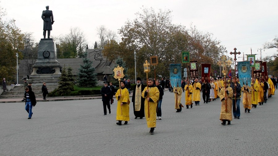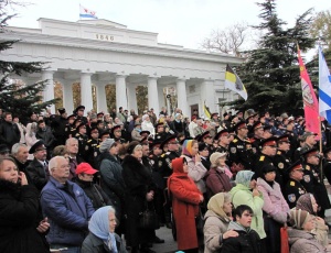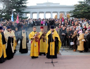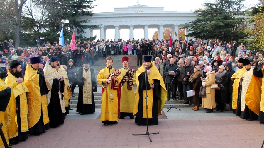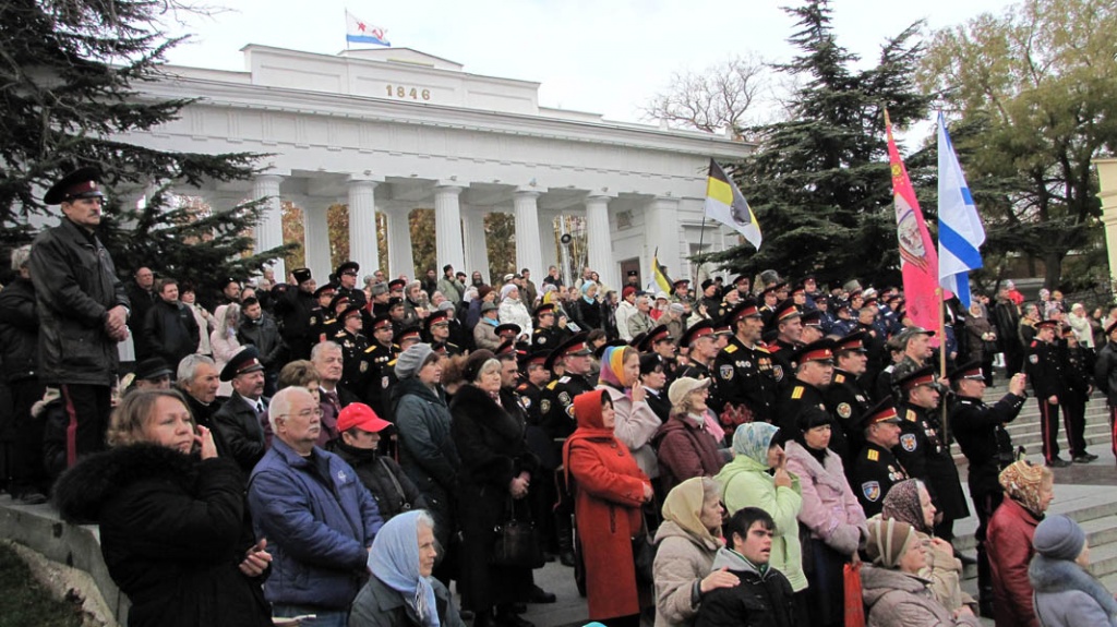 В Севастополе отметили годовщину Русского ИсходаТоржественные мероприятия, посвященные дню памяти исхода из Крыма русской армии, по традиции начались с крестного хода от Владимирского собора-усыпальницы адмиралов до площади Нахимова. На Графской пристани благочинный Севастопольского округа протоиерей Сергий Халюта в сослужении духовенства отслужил панихиду по убиенным в Гражданской войне и окончившим жизнь на чужбине русским людям. «Мы сегодня молились о наших праотцах; о тех, кто, уходя отсюда, оставляя эту землю, надеялся вернуться на нее; о тех, кто, уходя на чужбину, непрестанно молился о своих потомках, оставшихся здесь, на этой русской земле. Сегодня мы вспоминаем военных: простых солдат и офицеров, вспоминаем духовенство, которое уходило вместе со своей паствой, вспоминаем всех, кто уходил отсюда, гонимый безбожной советской властью», - обратился отец Сергий к собравшимся. – «В 1992-м году в Крым приезжал епископ Вашингтонский Василий (Родзянко). Господь сподобил меня услышать историю Исхода с этого места; владыка Василий, которому было на момент тех событий 6 лет, подробно рассказал мне, как отсюда уходили люди. Один момент из этого рассказа я особенно запомнил: вся площадь Нахимова, Графская пристань, прилегающие улицы были заполнены народом; народом, который понимал, что назад дороги уже не будет. И вот, когда архиерей призвал всех к общей молитве, когда прозвучал возглас протодиакона: «Господу помолимся» коленопреклоненно, то все эти люди, около 100 тысяч человек, стали на колени, и владыка Василий говорил, что повисла такая тишина, которую можно было потрогать. Эта тишина говорила всем уходящим о том скорбном пути, который им предстоит пройти. Для чего мы сегодня собрались здесь? Это не митинг. Это молитва. Молитва, в которой мы вспомнили тех, кто ушел на чужбину и молитва о том, чтобы Господь сподобил нас не повторить больше той страшной трагедии, которая свершилась с нашим народом». Фото 6, 14, 15 - диакон Николай Албул