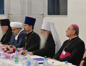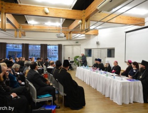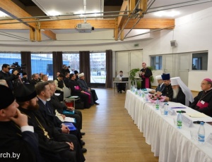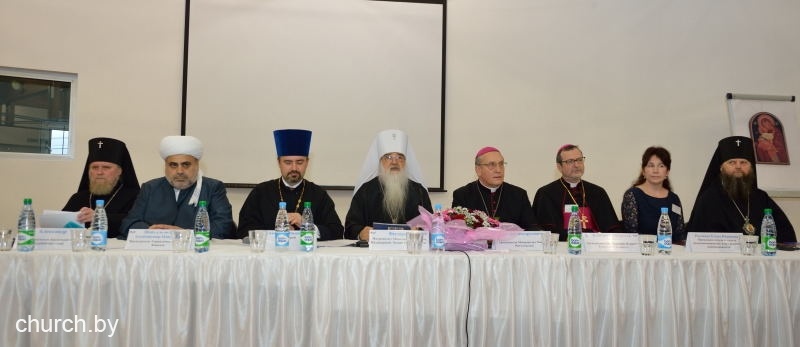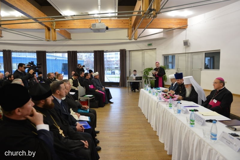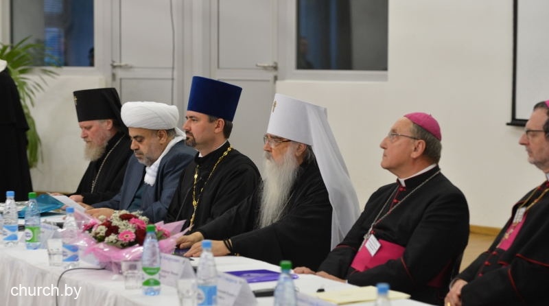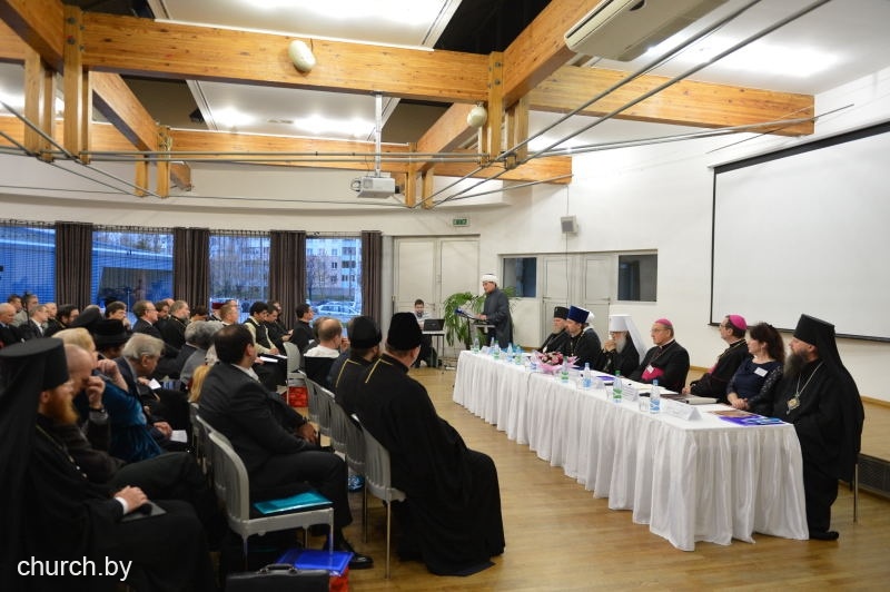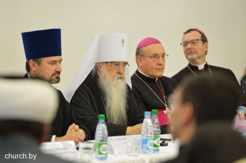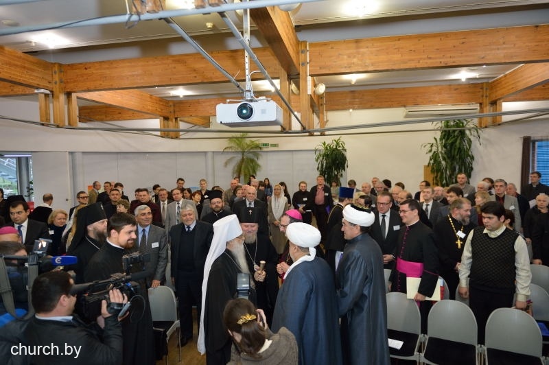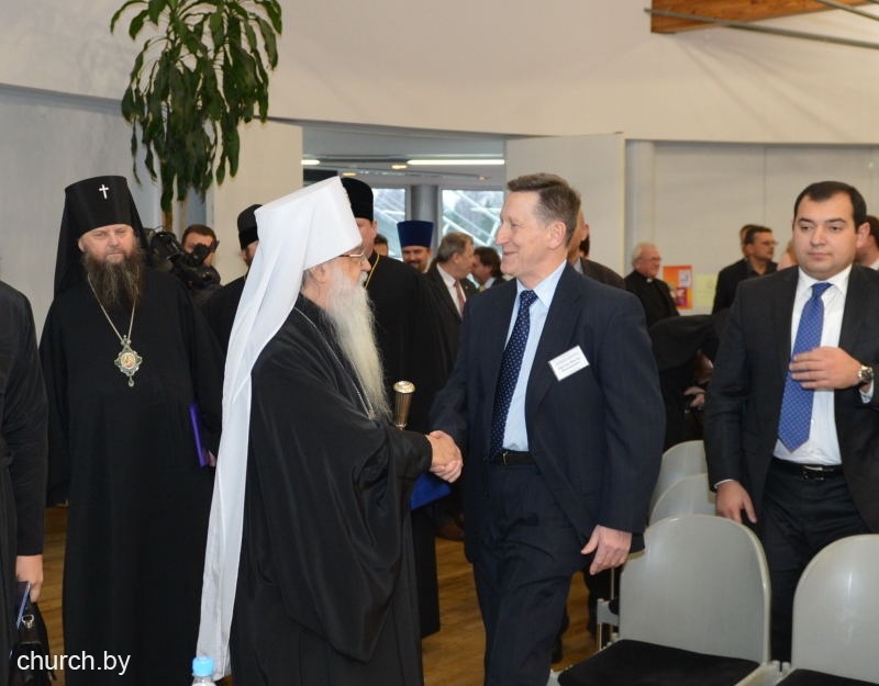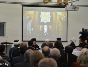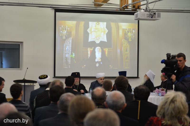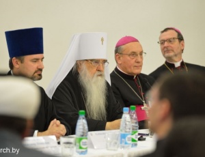 Патриарший экзарх всея Беларуси возглавил открытие международной конференции «Христианская антропология перед вызовами современности»17 ноября 2013 года в Минском международном образовательном центре имени Йоханнеса Рау открылась VIII международная межконфессиональная конференция «Христианская антропология перед вызовами современности». Организаторами форума выступили Институт религиозного диалога и межконфессиональных коммуникаций при Синоде Белорусской Православной Церкви, международное общественное объединение «Христианский образовательный центр имени святых Мефодия и Кирилла», Папский совет по содействию христианскому единству (Ватикан). В президиум конференции вошли: Патриарший экзарх всея Беларуси митрополит Минский и Слуцкий Филарет; управляющий делами Белорусской Православной Церкви архиепископ Новогрудский и Лидский Гурий; архиепископ Бакинский и Азербайджанский Александр; апостольский нунций в Республике Беларусь архиепископ Клаудио Гуджеротти; архиепископ Тадеуш Кондрусевич (Римско-Католическая Церковь); глава Управления мусульман Кавказа шейх-уль-ислам Аллахшукюр Паша-заде; руководитель отдела образования и катехизации Минской епархии протоиерей Александр Шимбалев; начальник отдела по делам религий Аппарата Уполномоченного по делам религий и национальностей Республики Беларусь Елена Радченко. Приветствуя собравшихся, митрополит Филарет, в частности, отметил: «Согласно общему мнению святых отцов, Бог стал человеком, чтобы человек стал богом. Но гуманизм наших дней говорит человеку не о богоподобии, а о правах на реализацию всевозможных желаний. Это приводит к тому, что так называемая защита человеческого достоинства оборачивается своей противоположностью — попранием лучшего, что есть в человеке. В этом и содержится вызов библейской антропологии, в этом кроется возможность появления целого комплекса вопросов, связанных с однополыми браками, абортами, эвтаназией, суррогатным материнством и другими проблемами биоэтики и морали. В условиях глобальной подмены ценностей кажется почти невозможным кому-то что-то доказать или объяснить. Однако, братия и сестры, мы не должны терять надежды! Мы призваны свидетельствовать всей своей жизнью о побеждающем тьму Евангельском Свете, о Любви, которая и есть наш Господь, о незыблемости богооткровенных заповедей». От имени уполномоченного по делам религий и национальностей Республики Беларусь Леонида Гуляко к собранию обратилась Е. Радченко. Собравшиеся выслушали телеобращение Святейшего Патриарха Константинопольского Варфоломея. Апостольский нунций в Республике Беларусь архиепископ Клаудио Гуджеротти передал организаторам и гостям форума приветствие Папы Римского Франциска. Слово для приветствия было предоставлено также главе Управления мусульман Кавказа шейх-уль-исламу Аллахшукюру Паша-заде. Подтвердив свою личную готовность трудиться ради межэтнического и межрелигиозного мира и согласия, исламский лидер выразил признательность Русской Православной Церкви, Святейшему Патриарху Кириллу и архиепископу Бакинскому и Азербайджанскому Александру. Глава Управления мусульман Кавказа особо поблагодарил митрополита Филарета за состоявшийся накануне прием. Секретарь Отдела внешних церковных связей Московского Патриархата по межхр