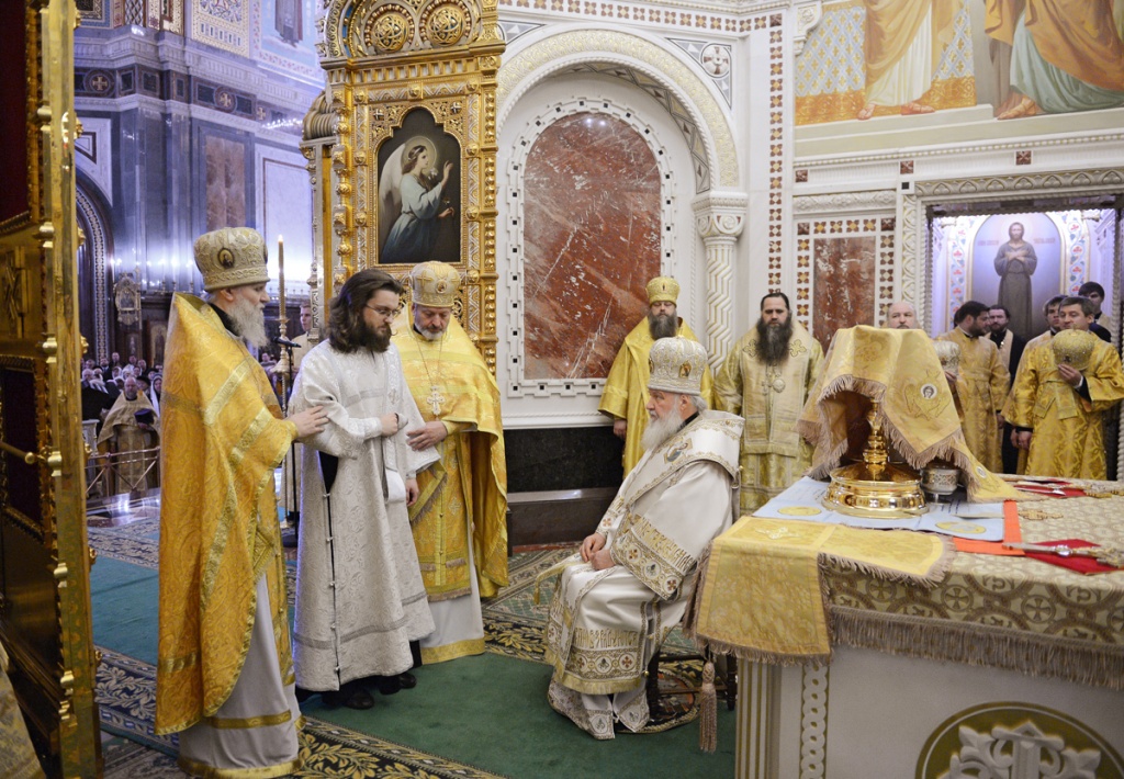 Фоторепортаж о Божественной литургии в Храме Христа Спасителя в день рождения Предстоятеля Русской Церкви20 ноября 2013 года, в день своего рождения, Святейший Патриарх Московский и всея Руси Кирилл совершил Божественную литургию в кафедральном соборном Храме Христа Спасителя