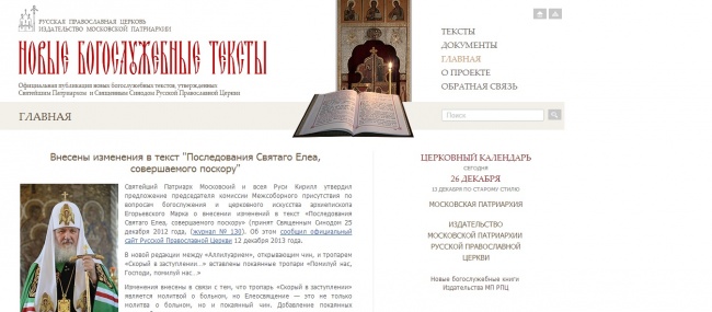 Новый ресурс позволит Издательству Московской Патриархии максимально быстро выполнять поручения Священного Синода по публикации богослужебных текстов. Предпечатная подготовка текста для публикации начинается сразу после получения выписки из журнала заседания Священного Синода (с новым богослужебным текстом в приложении) и представляет собой стандартную редакционную работу (вычитка, расстановка ударений, перевод в церковнославянскую графику, орфографическая редактура), к которой добавляется еще и html-разметка гражданского текста для представления на странице сайта. Подготовленный текст публикуется на сайте в трех видах: непосредственно на странице сайта в гражданском начертании с ударениями, а также в виде двух файлов для скачивания (в гражданском начертании с ударениями в формате DOCX и в церковнославянском начертании в формате PDF). Таким образом, текст новой службы, чина, молитвы или акафиста можно читать непосредственно на сайте (на стационарном компьютере, ноутбуке, планшете или смартфоне), а при необходимости и распечатать на бумаге, для чего предусмотрена соответствующая опция. Файл в формате DOCX может быть использован непосредственно для верстки книги, а файл в формате PDF удобен тем, что открывается в любой системе и не требует для своего отображения установки церковнославянского шрифта. Все тексты сквозным образом связаны с журналами Священного Синода или иными утверждающими документами (например, циркулярными письмами), которые также публикуются на сайте. На странице с конкретным текстом сверху отображаются данные о его утверждении (с возможностью перейти на страницу утверждающего документа). Справа отображаются сведения о публикации текста в бумажных книгах Издательства Московской Патриархии (обложка, библиографическое описание, указание страниц). Необходимый текст можно найти по дате заседания Синода, по типу, по названию, по алфавиту. У заинтересованных посетителей есть возможность отправить вопрос, замечание, отзыв, предложение непосредственно в Отдел богослужебных книг Издательства Московской Патриархии через страницу обратной связи. Сайт находится в стадии активного заполнения; сейчас на нем можно найти практически все недавно утвержденные тексты. В дальнейшем планируется электронная публикация всех богослужебных текстов, утвержденных с 1988 года