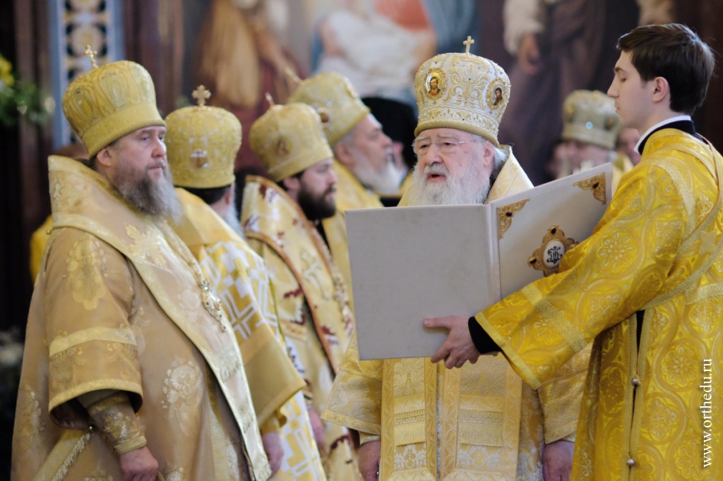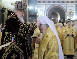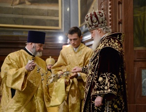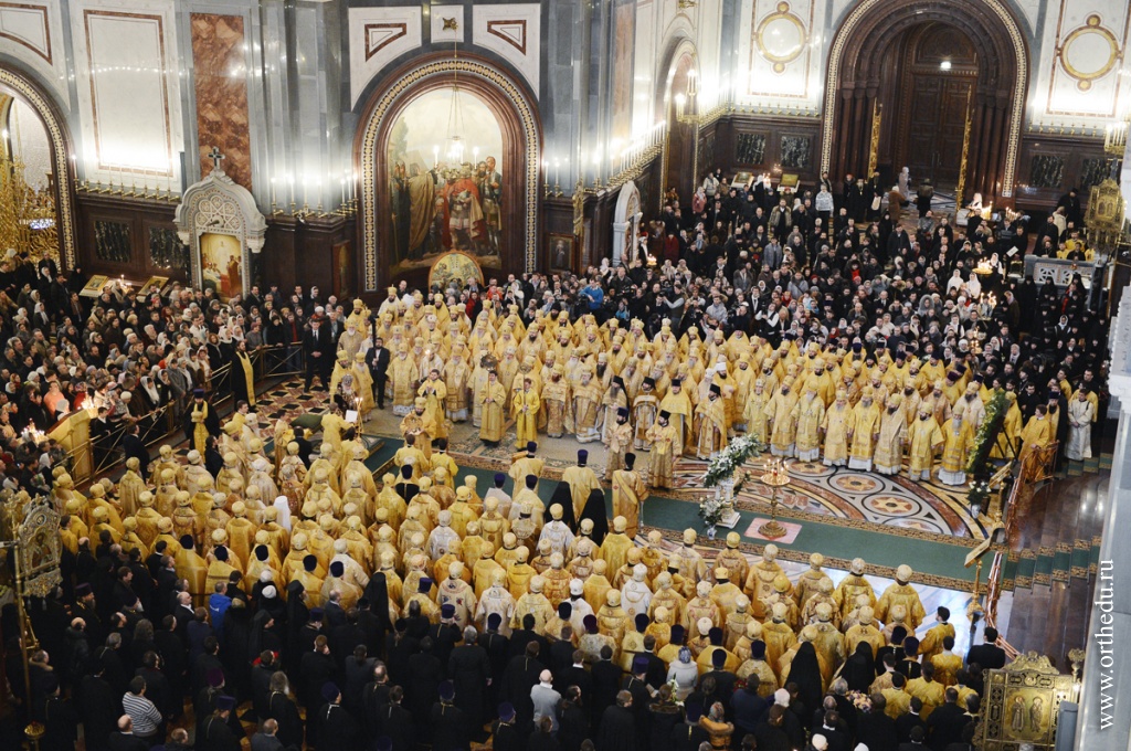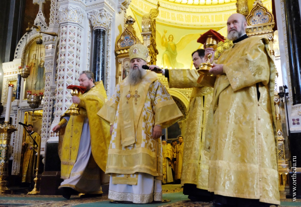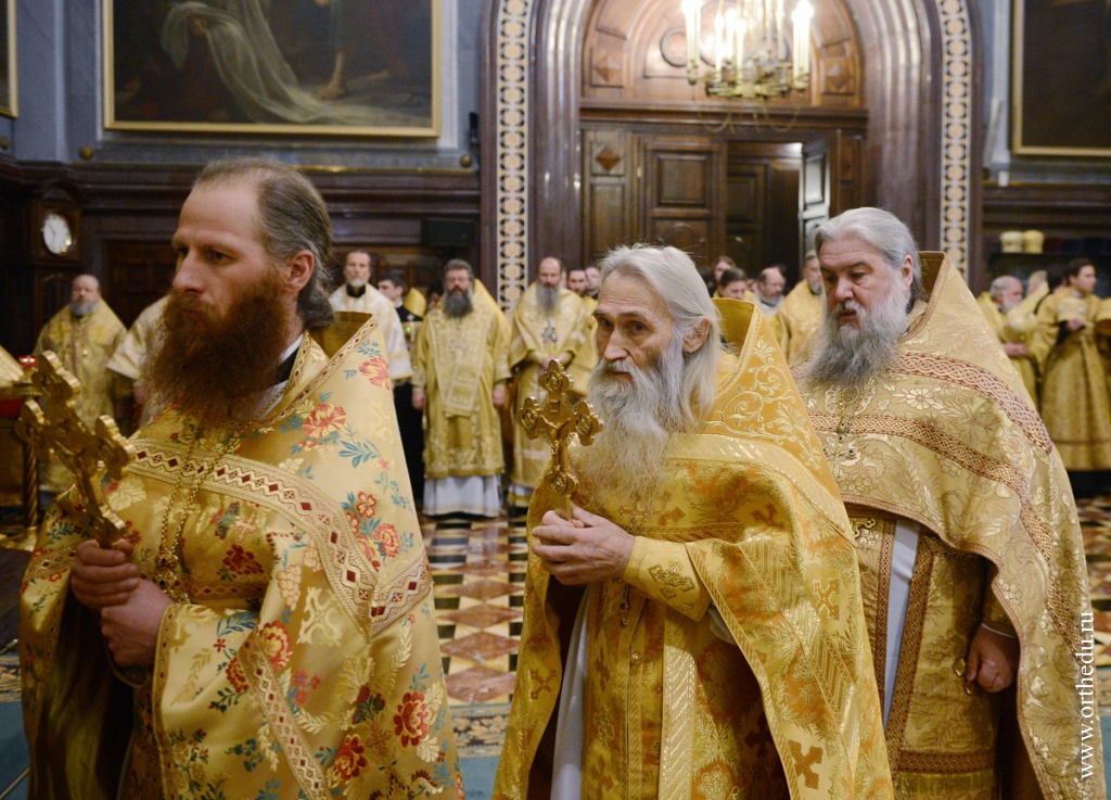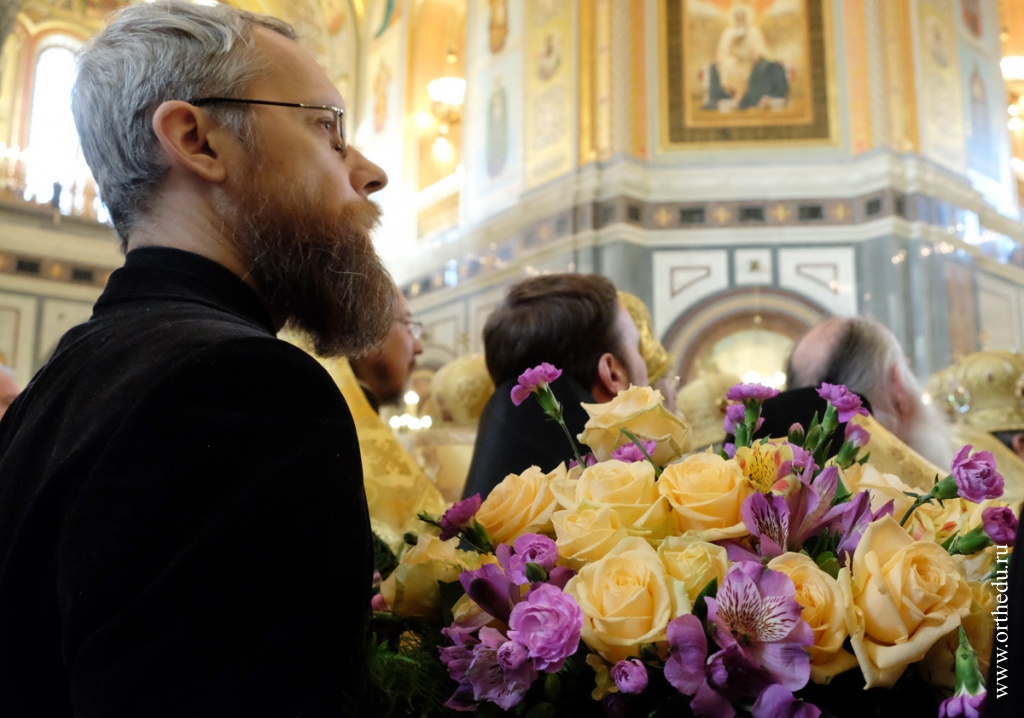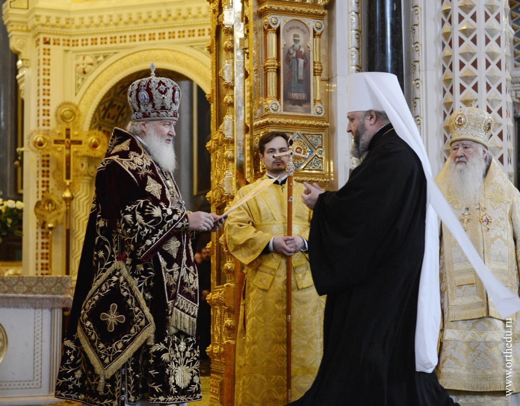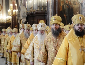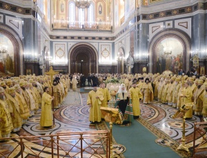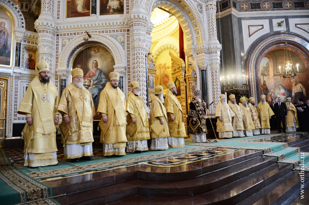 Пятая годовщина интронизации Святейшего Патриарха Кирилла1 февраля 2014 года, в пятую годовщину интронизации Святейшего Патриарха Московского и всея Руси Кирилла, в кафедральном соборном Храме Христа Спасителя в Москве была совершена Божественная литургия. В богослужении принимал участие правящие архиереи Новосибирской митрополии. Предстоятелю Русской Православной Церкви сослужили: митрополит Крутицкий и Коломенский Ювеналий; митрополит Кишиневский и всея Молдовы Владимир; митрополит Астанайский и Казахстанский Александр; митрополит Ташкентский и Узбекистанский Викентий; митрополит Саранский и Мордовский Варсонофий, управляющий делами Московской Патриархии; митрополит Минский и Слуцкий Павел, Патриарший экзарх всея Беларуси; митрополит Волоколамский Иларион, председатель Отдела внешних церковных связей Московского Патриархата; митрополит Восточно-Американский и Нью-Йоркский Иларион, первоиерарх Русской Зарубежной Церкви; митрополит Бориспольский и Броварской Антоний, управляющий делами Украинской Православной Церкви; сонм иерархов Русской Православной Церкви. Также Его Святейшеству сослужили представители Поместных Православных Церквей при Патриархе Московском и всея Руси:митрополит Киринский Афанасий (Александрийская Православная Церковь), архиепископ Филиппопольский Нифон(Антиохийская Православная Церковь), епископ Моравичский Антоний (Сербская Православная Церковь), архимандрит Стефан (Диспиракис) (Иерусалимская Православная Церковь), архимандрит Феоктист (Димитров) (Болгарская Православная Церковь). Среди сослуживших Святейшему Патриарху Кириллу также были: схиархимандрит Илий (Ноздрин); протоиерей Владимир Диваков, секретарь Патриарха Московского и всея Руси по г. Москве; протоиерей Всеволод Чаплин, председатель Синодального отдела по взаимоотношениям Церкви и общества; архимандрит Тихон (Шевкунов), ответственный секретарь Патриаршего совета по культуре; протоиерей Димитрий Смирнов, председатель Патриаршей комиссии по вопросам семьи, защиты материнства и детства; протоиерей Михаил Рязанцев, ключарь Храма Христа Спасителя; протоиерей Александр Ганаба, секретарь Московской областной епархии; протоиерей Сергий Привалов, и.о. председателя Синодального отдела по взаимодействию с Вооруженными силами и правоохранительными органами; протоиерей Николай Балашов, заместитель председателя Отдела внешних церковных связей; архимандрит Филарет (Булеков), заместитель председателя Отдела внешних церковных связей; протоиерей Александр Агейкин, настоятель Богоявленского кафедрального собора г. Москвы; наместники ставропигиальных монастырей, духовенство г. Москвы. На богослужении присутствовали полномочный представитель Президента РФ в Центральном федеральном округе А.Д. Беглов, генеральный директор Государственной корпорации по атомной энергии «Росатом» С.В. Кириенко, председательСинодального информационного отдела В.Р. Легойда, руководитель Художественно-производственного предприятия«Софрино» Е.А. Пархаев, помощник председателя Правительства Российской Федерации Г.Г. Онищенко, настоятельницы женских обителей, священнослужители Москвы и Подмосковья, сотрудники синодальных и иных церковных структур, представители приходских советов, преподаватели и учащиеся церковных учебных з