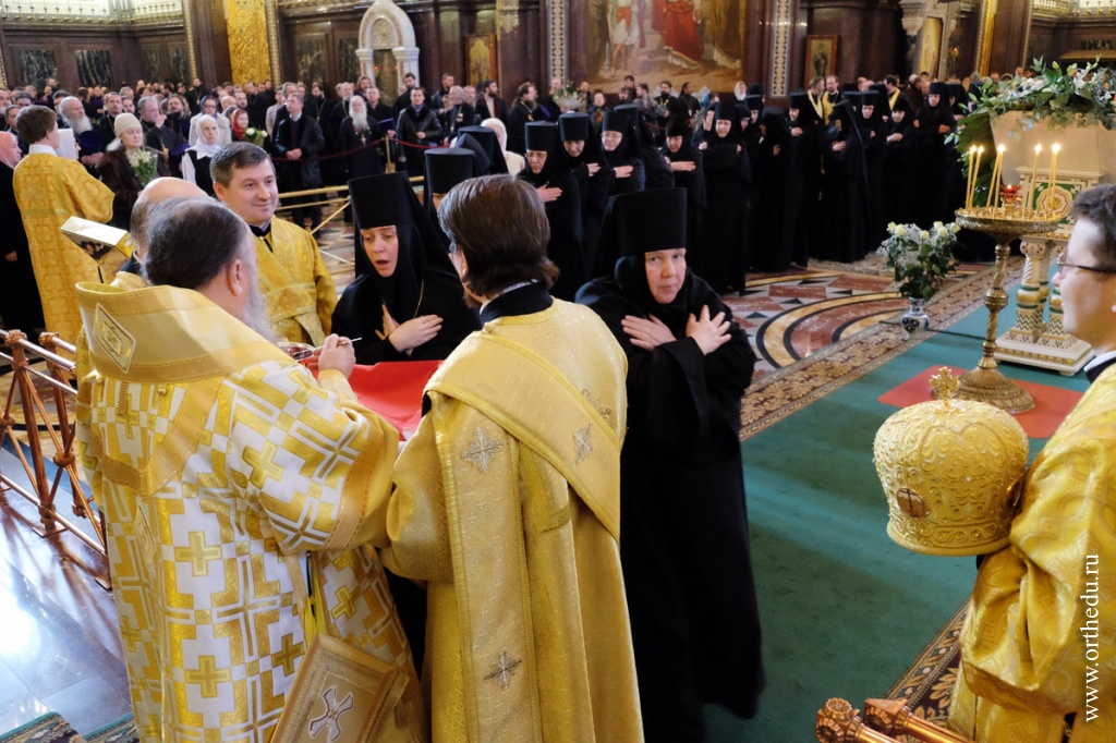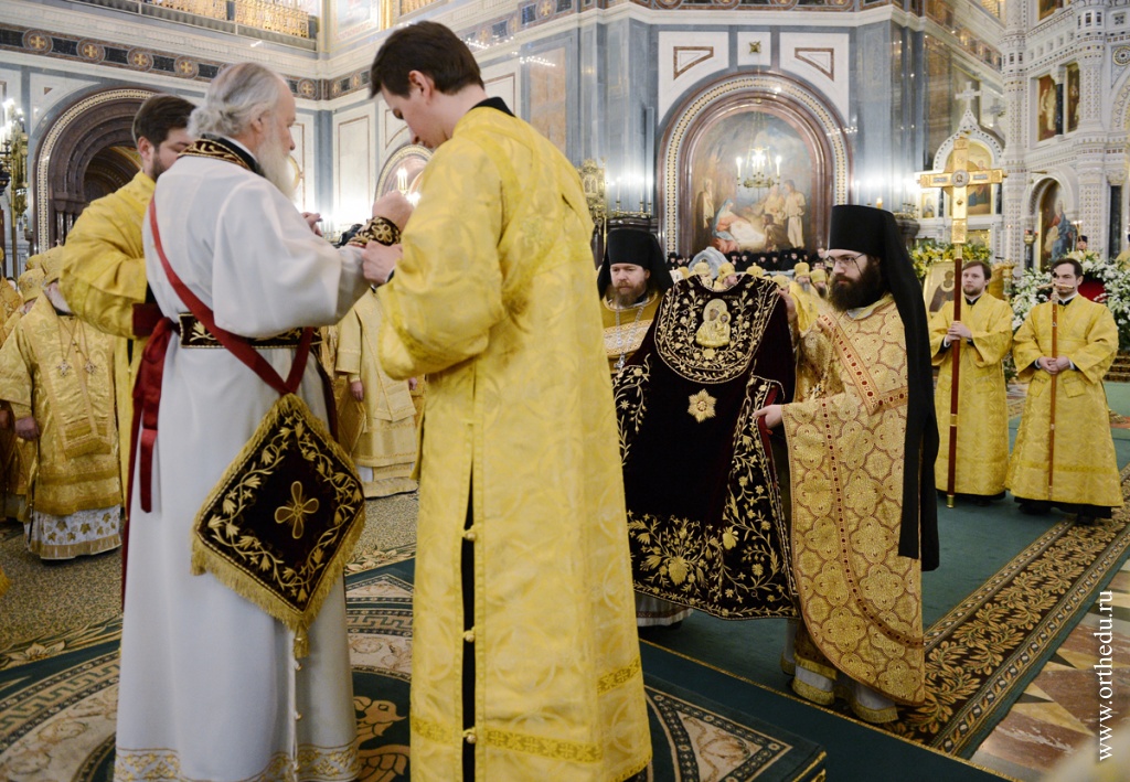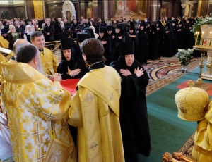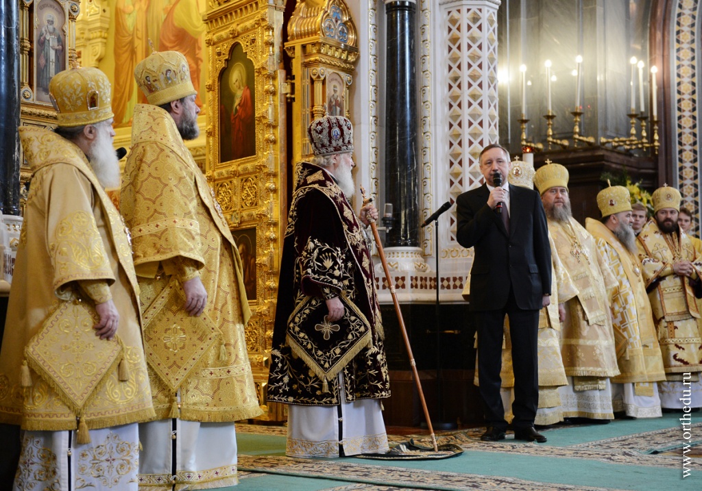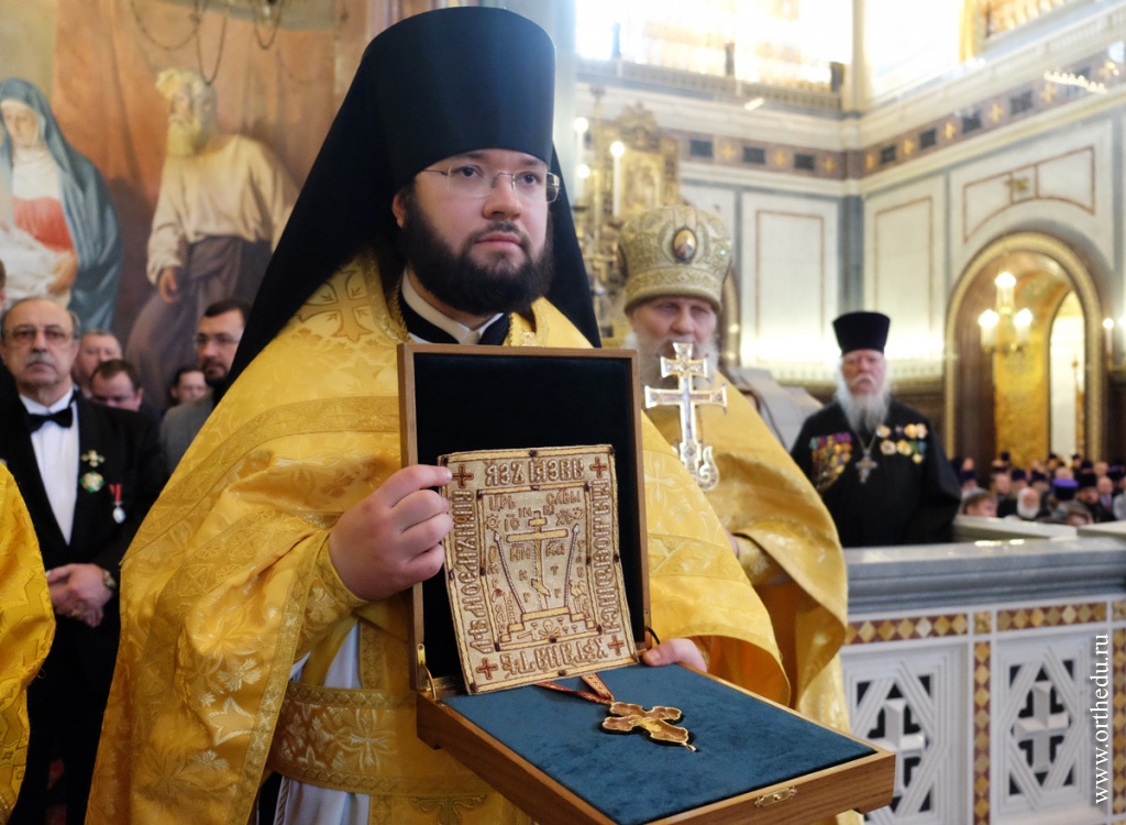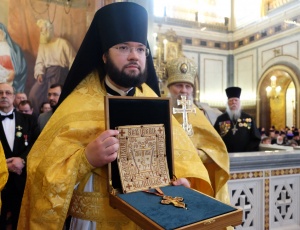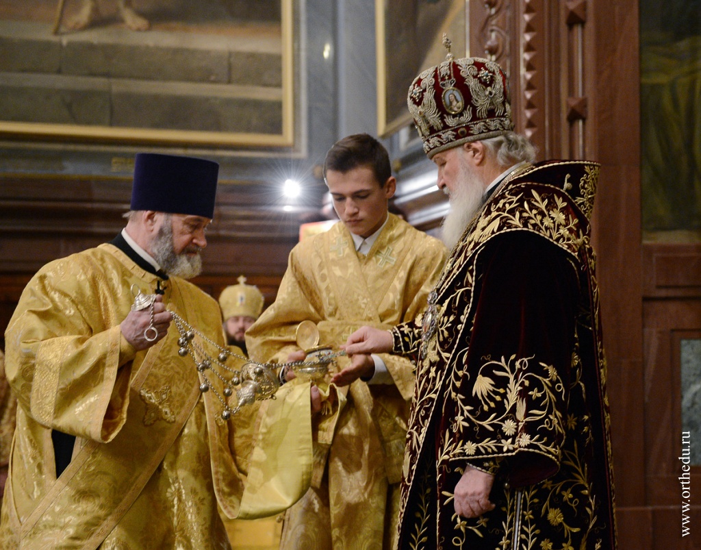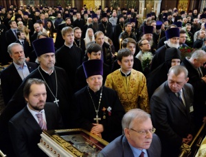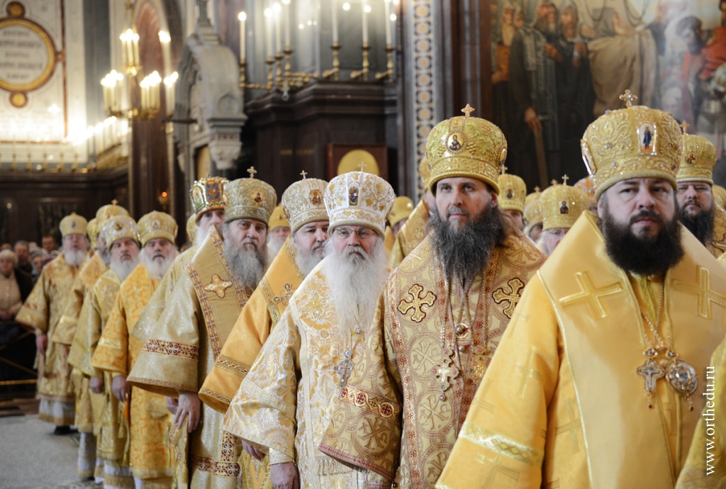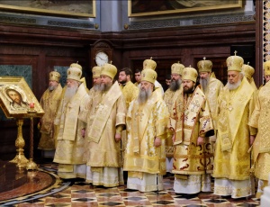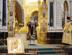 Пятая годовщина интронизации Святейшего Патриарха Кирилла1 февраля 2014 года, в пятую годовщину интронизации Святейшего Патриарха Московского и всея Руси Кирилла, в кафедральном соборном Храме Христа Спасителя в Москве была совершена Божественная литургия. В богослужении принимал участие правящие архиереи Новосибирской митрополии. Предстоятелю Русской Православной Церкви сослужили: митрополит Крутицкий и Коломенский Ювеналий; митрополит Кишиневский и всея Молдовы Владимир; митрополит Астанайский и Казахстанский Александр; митрополит Ташкентский и Узбекистанский Викентий; митрополит Саранский и Мордовский Варсонофий, управляющий делами Московской Патриархии; митрополит Минский и Слуцкий Павел, Патриарший экзарх всея Беларуси; митрополит Волоколамский Иларион, председатель Отдела внешних церковных связей Московского Патриархата; митрополит Восточно-Американский и Нью-Йоркский Иларион, первоиерарх Русской Зарубежной Церкви; митрополит Бориспольский и Броварской Антоний, управляющий делами Украинской Православной Церкви; сонм иерархов Русской Православной Церкви. Также Его Святейшеству сослужили представители Поместных Православных Церквей при Патриархе Московском и всея Руси:митрополит Киринский Афанасий (Александрийская Православная Церковь), архиепископ Филиппопольский Нифон(Антиохийская Православная Церковь), епископ Моравичский Антоний (Сербская Православная Церковь), архимандрит Стефан (Диспиракис) (Иерусалимская Православная Церковь), архимандрит Феоктист (Димитров) (Болгарская Православная Церковь). Среди сослуживших Святейшему Патриарху Кириллу также были: схиархимандрит Илий (Ноздрин); протоиерей Владимир Диваков, секретарь Патриарха Московского и всея Руси по г. Москве; протоиерей Всеволод Чаплин, председатель Синодального отдела по взаимоотношениям Церкви и общества; архимандрит Тихон (Шевкунов), ответственный секретарь Патриаршего совета по культуре; протоиерей Димитрий Смирнов, председатель Патриаршей комиссии по вопросам семьи, защиты материнства и детства; протоиерей Михаил Рязанцев, ключарь Храма Христа Спасителя; протоиерей Александр Ганаба, секретарь Московской областной епархии; протоиерей Сергий Привалов, и.о. председателя Синодального отдела по взаимодействию с Вооруженными силами и правоохранительными органами; протоиерей Николай Балашов, заместитель председателя Отдела внешних церковных связей; архимандрит Филарет (Булеков), заместитель председателя Отдела внешних церковных связей; протоиерей Александр Агейкин, настоятель Богоявленского кафедрального собора г. Москвы; наместники ставропигиальных монастырей, духовенство г. Москвы. На богослужении присутствовали полномочный представитель Президента РФ в Центральном федеральном округе А.Д. Беглов, генеральный директор Государственной корпорации по атомной энергии «Росатом» С.В. Кириенко, председательСинодального информационного отдела В.Р. Легойда, руководитель Художественно-производственного предприятия«Софрино» Е.А. Пархаев, помощник председателя Правительства Российской Федерации Г.Г. Онищенко, настоятельницы женских обителей, священнослужители Москвы и Подмосковья, сотрудники синодальных и иных церковных структур, представители приходских советов, преподаватели и учащиеся церковных учебных з