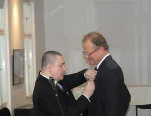 Награды достойным31 января 2014 г. в Большом зале Российского центра науки и культуры (РЦНК) в Любляне состоялась встреча представителей словенской общественности и российских соотечественников с делегацией Войсковой Православной Миссии (ВПМ) объединяющей в своих рядах многих известных патриотов России - священнослужителей и мирян Русской Православной Церкви, деятелей российской науки и культуры. Делегация в составе советника Первоиерарха Русской Православной церкви за рубежом Игоря Смыкова и зам. начальника ВПМ, координатора Союза Православных Братств Московского патриархата Русской православной церкви Юрия Агещева совершила паломничество по святым местам, связанным с православием на Балканах. Гости рассказали участникам встречи о своих впечатлениях от посещения православных святынь, о встречах с Митрополитом Загребским и Люблянским Иоанном и Митрополитом Черногорским и Приморским Амфилохием, которому был вручен орден «Во имя Святого Страстотерпца Николая II». На встрече в РЦНК также состоялась церемония вручения наград ВПМ. За укрепление дружественных гуманитарных связей между народами Словении и России орденом «За службу России» были награждены Председатель словенско-российского делового совета, президент фирмы «Рико» Янез Шкрабец, и директор художественной галереи «Скульптура» Леонхарт Подгорник. Памятный знак «Великий князь Михаил Александрович Романов» в связи со столетием начала Первой мировой войны был вручен активисту сербской общины Любляны Милораду Максичу. Нагрудным знаком «Почетный сотрудник Православной миссии» и Грамотой Черногорской митрополии Сербской Православной Церкви и Духовной семинарии в Цетинье за укрепление дружеских связей между Россией и Черногорией, а также за помощь православным храмам был отмечен российский бизнесмен, генеральный директор фирмы «Росслав» Гела Валиев. Награжденных тепло поздравил Посол России в Словении Доку Завгаев.
