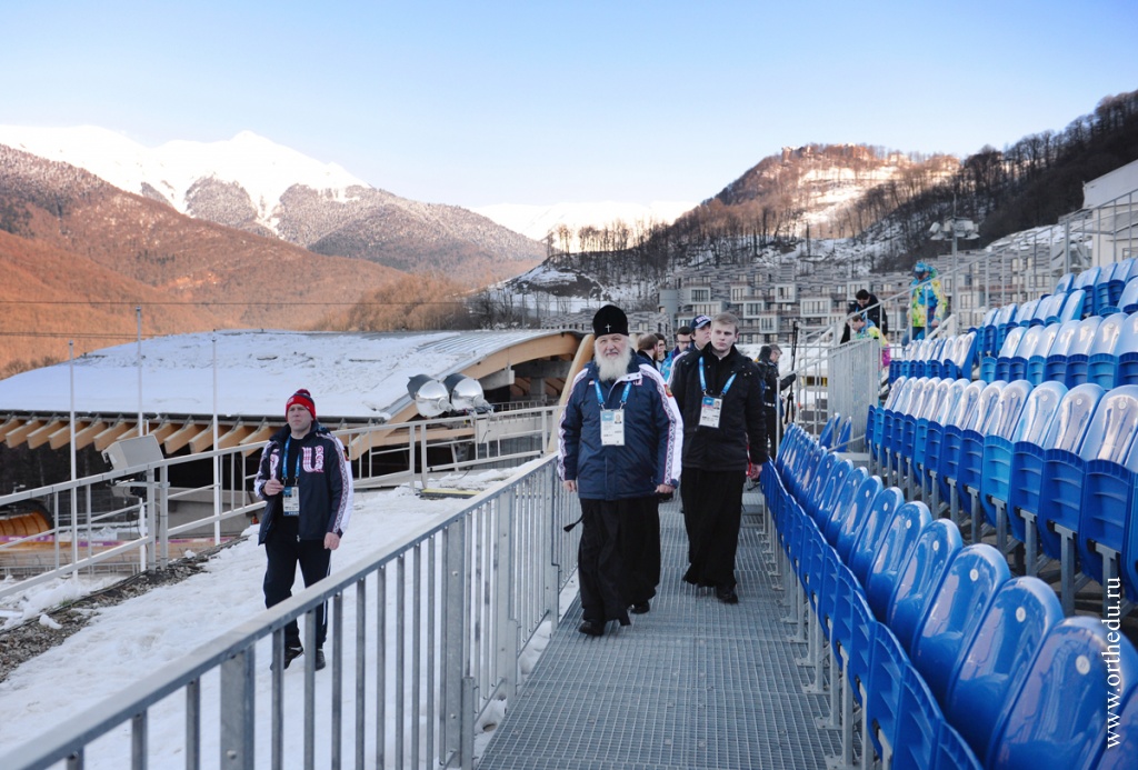 Фоторепортаж визита Святейшего Патриарха Кирилла в Сочи. Посещение объектов горного кластера Олимпиады4 февраля 2014 года Святейший Патриарх Московский и всея Руси Кирилл посетил ряд спортивных объектов горного кластера Зимней Олимпиады в Сочи.