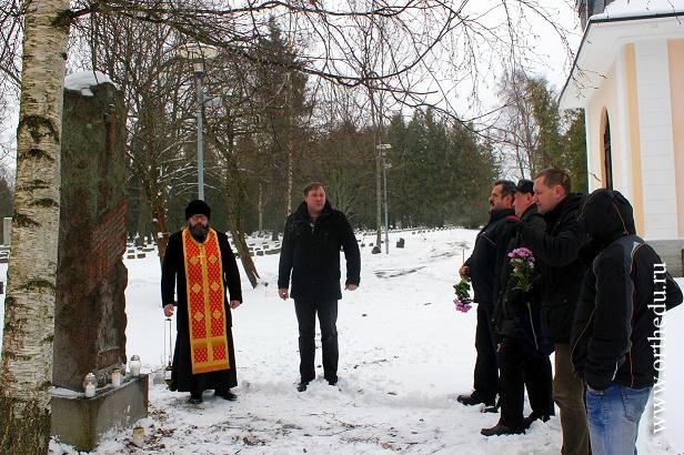 В минувшую пятницу, 7 февраля, на Воинском кладбище в Таллине состоялось торжественно-траурное мероприятие в память о трагически погибших 100 лет назад в результате несчастного случая русских воинах - нижних чинах 91-го Двинского пехотного полка Русской Императорской армии. У памятной стелы, установленной сослуживцами на могиле погибших товарищей, настоятелем православного Раквереского Храма Рождества Пресвятой Богородицы протоиереем Александром Лебедевым была отслужена Панихида. Богослужение было совершено не только в память погибших в результате несчастного случая, но и всех павших на полях сражений, за Веру и Отечество жизни положивших, скончавшихся от ран и лишений в годы Первой мировой войны и других военных кампаний воинов 91-го Двинского пехотного полка Русской Императорской армии. В памятной церемонии приняли участие члены действующего в Эстонии военно-исторического клуба "Фронт Лайн", Таллинского Союза ветеранов Афганистана и локальных войн "Боевое братство" и НКО "Monuments". В начале мероприятия председатель военно-исторического клуба "Фронт Лайн" Андрей Лазурин рассказал об истории формирования и боевом путь 91-го Двинского пехотного полка, основанного летом 1805 года и имевшего славные боевые традиции. 91-й Двинский полк вёл свою историю с 1805 года, вначале как 21-й егерский полк, участвовал в военной кампании 1806-1807 годов: бои под Лопачином и Голыбином, сражение при Прейсиш-Элау, а также принимал участие в сражениях под Данцигом, Гейльсбергом, Кенигсбергом. В Отечественную войну 1812 года полк принял участие в тяжелейших сражениях под Смоленском и Бородино. Примечательно, что одним из командиров 91-го Двинского пехотного полка в начале Первой мировой войны, в сентябре 1914 года, был назначен полковник Григорий Александрович Пушкин, сын генерала от кавалерии Александра Александровича Пушкина и внук великого русского поэта Александра Сергеевича Пушкина. Полковник Пушкин сражался вместе со своим полком в 1914-1915 годах, но после тяжёлого ранения в 1915 году и последовавшего за ним лечения, был зачислен в офицерский резерв при штабе Петроградского военного округа. Впоследствии командовал Запасной Пехотной бригадой в Москве. В последние годы своей жизни работал научным сотрудником Пушкинского отдела Государственной библиотеки СССР. Под памятной стелой на Воинском кладбище покоятся рядовые второй роты 91-го Двинского полка: Илья Тимофеев, Андрей Гурьев, Николай Сироткин, Пётр Крук, Андрей Исаев, Эдуард Ромер. В торжественно-траурной церемонии приняли участие представители В.И.К. "Фронт Лайн" Андрей Лазурин, Евгений Афанасьев, Тимур Латыпов; Станислав Гробер ("Monuments") и представитель таллинского союза ветеранов Афганистана и локальных войн "Боевое Братство" Юрий Варенцов. С 2011 года духовником военно-исторического клуба "Фронт Лайн" по благословению митрополита Таллинского и всея Эстонии владыки Корнилия, является протоиерей Александр Лебедев, настоятель Раквереского Храма Рождества Пресвятой Богородицы. Вместе с членами клуба "Фронт-Лайн" протоиерей Александр Лебедев постоянно участвует в поездках по уходу за воинскими захоронениями времён Первой и Второй мировых войн, на местах проводит панихиды по павшим воинам. В завершении памятной церемонии "фронтлайновцы" преподнесли в подарок протоиерею Александру Лебедеву книгу "И
