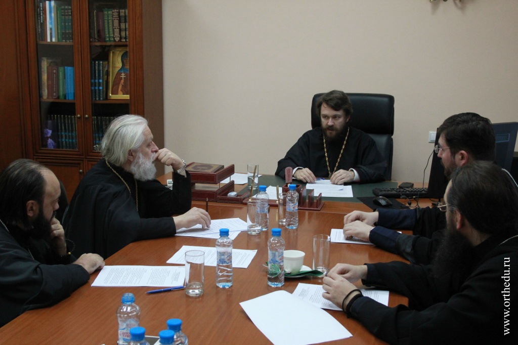 Состоялось первое заседание коллегии Координационного центра по развитию богословской науки в Русской Православной Церкви19 февраля 2014 года в Общецерковной аспирантуре и докторантуре имени святых равноапостольных Кирилла и Мефодия состоялось первое заседание коллегии Координационного центра по развитию богословской науки в Русской Православной Церкви. Заседание возглавил руководитель Координационного центра, председатель Отдела внешних церковных связей, председатель Синодальной библейско-богословской комиссии, ректор Общецерковной аспирантуры и докторантуры митрополит Волоколамский Иларион, — сообщает Патриархия. Члены коллегии обсудили практические шаги по реализации задач, поставленных Священным Синодом перед Координационным центром. По итогам обсуждения участники заседания приняли календарный план работы Центра на текущий год. *** Решение о создании Координационного центра было принято на состоявшемся 25-26 декабря заседании Священного Синода (журнал № 156) во исполнение поручений Архиерейского Собора 2013 года по развитию богословской науки в Русской Православной Церкви. В сферу его ответственности вошли координация усилий научных и образовательных учреждений Русской Церкви, определение наиболее значимых направлений научно-исследовательской деятельности в сфере богословия, разработка общецерковного плана научно-богословской деятельности, подготовка стандартов качества и оценки научной деятельности, ведущейся в церковных научных и образовательных организациях Московского Патриархата, разработка грантовых программ. В состав коллегии Координационного центра по развитию богословской науки в Русской Православной Церкви входят: