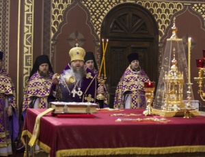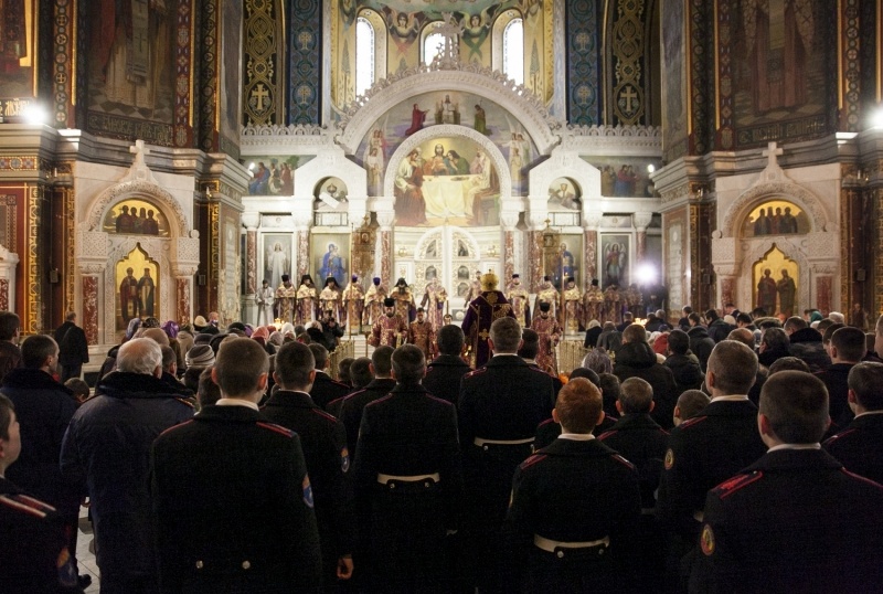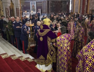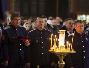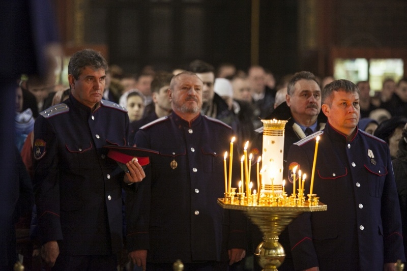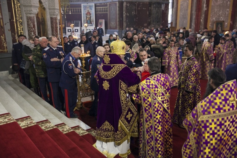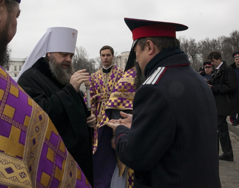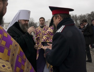 В праздник Торжества Православия совершено общее великопостное говение атаманов округов Всевеликого войска Донского9 марта 2014 года, в неделю Торжества Православия, глава Донской митрополии митрополит Ростовский и Новочеркасский Меркурий совершил Литургию св. Василия Великого в Вознесенском войсковом кафедральном соборе г. Новочеркасска — сообщает Ростовская и Новочеркасская епархия. Его Высокопреосвященству сослужили благочинный приходов Новочеркасского округа протоиерей Олег Добринский, настоятель собора игумен Филарет (Авдюшкин), секретарь Ростовского епархиального управления иеромонах Артемий (Кузьмин), духовники казачьих округов Всевеликого войска Донского. За богослужением пели сводные хоры Ростовского и Новочеркасского кафедральных соборов под управлением Галины Осадчей За Божественной литургией правящий архиерей рукоположил сотрудника Синодального отдела религиозного образования и катехизации иеродиакона Геннадия (Войтишко) во иеромонаха. Было совершено общее великопостное говение атаманов округов Всевеликого войска Донского во главе с верховным атаманом войска Виктором Гончаровым. По инициативе митрополита Ростовского и Новочеркасского Меркурия говение атаманов в Великий пост совершается каждый год. Как отмечал ранее верховный казачий атаман Виктор Водолацкий, участие казачьих атаманов в совместном говении представляется чрезвычайно важным в деле продолжения воцерковления российского казачества.