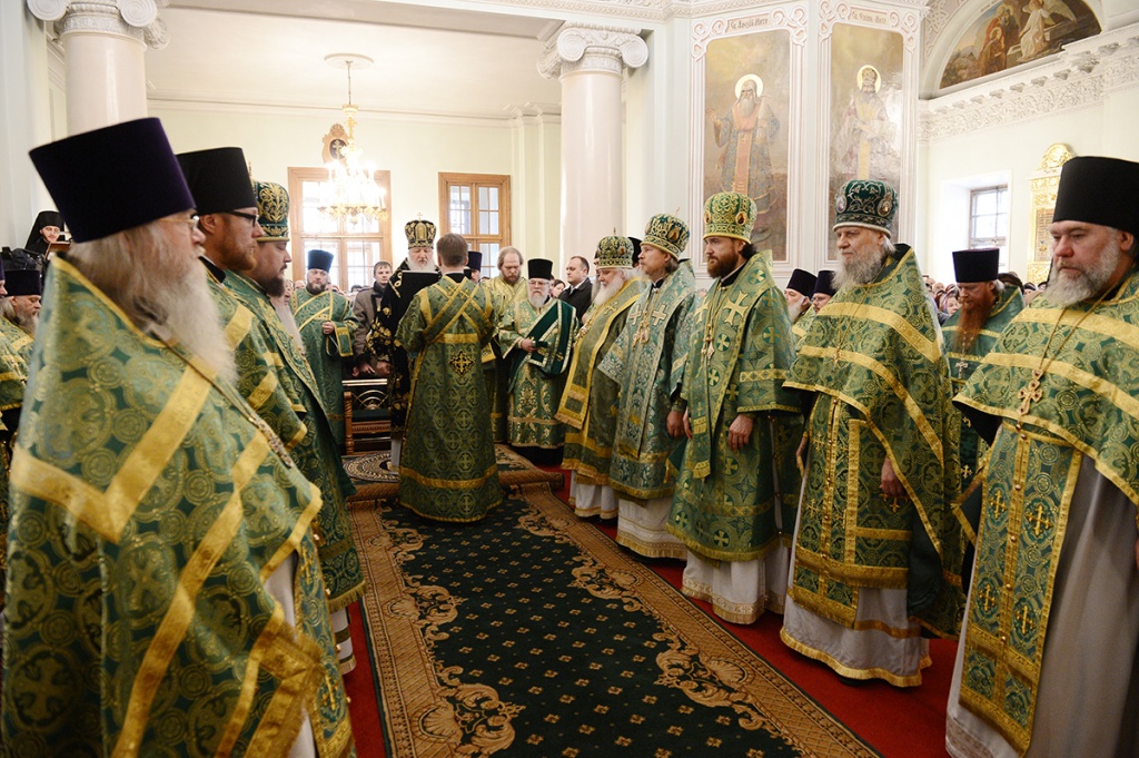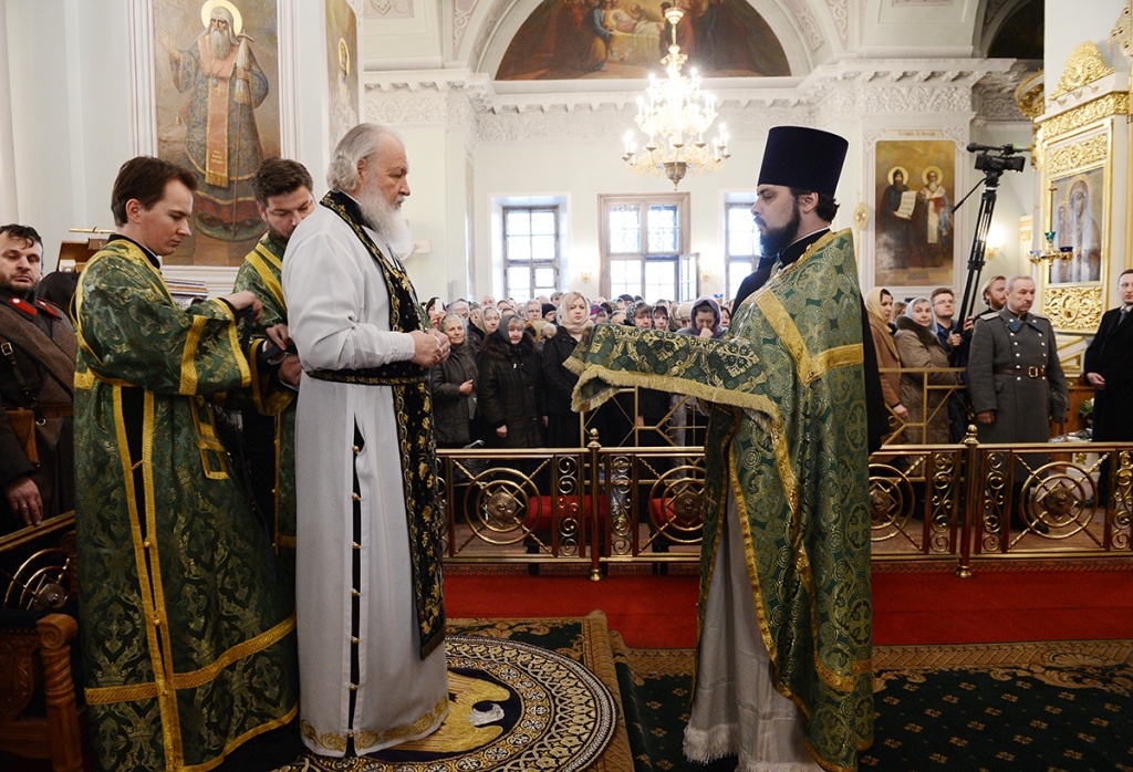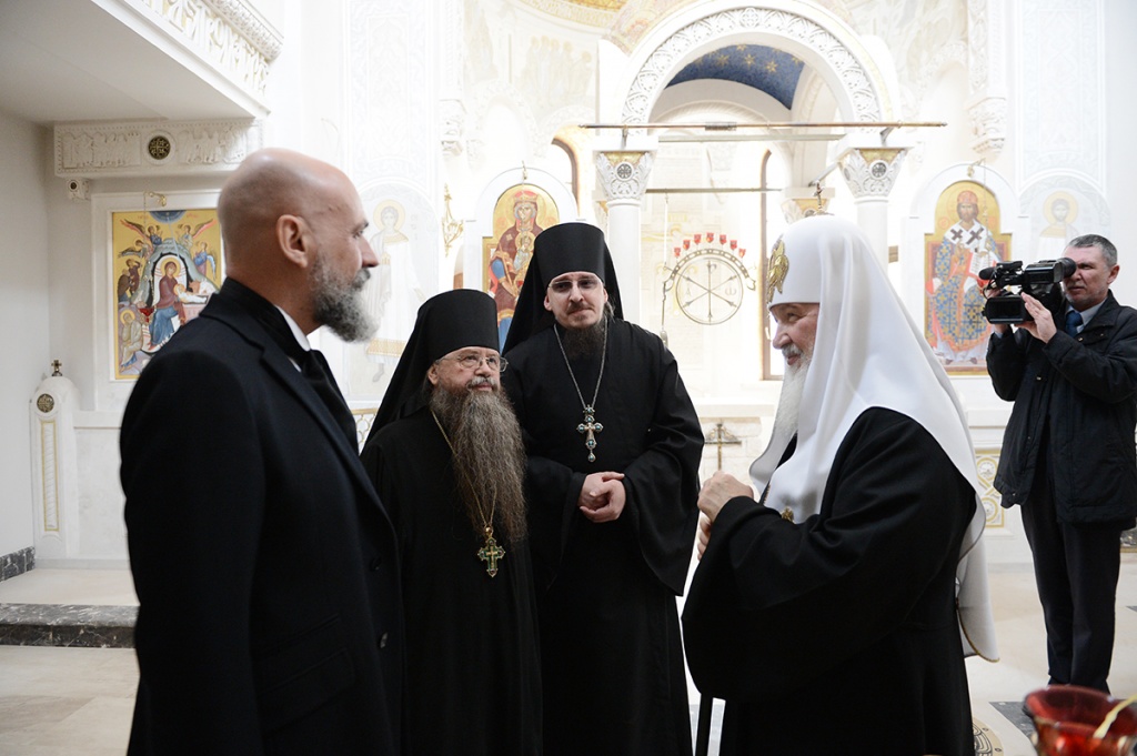 "Не только громкие победы и достижения, но и молчание и молитва могут быть сильным орудием в руках светских правителей" (видео)17 марта 2014 года, в понедельник 3-й седмицы Великого поста, день памяти благоверного князя Даниила Московского, Святейший Патриарх Московский и всея Руси Кирилл совершил вечерню и Литургию Преждеосвященных Даров в Троицком соборе Данилова ставропигиального мужского монастыря г. Москвы. Его Святейшеству сослужили: митрополит Волоколамский Иларион, председатель Отдела внешних церковных связей Московского Патриархата; митрополит Истринский Арсений, первый викарий Патриарха Московского и всея Руси по г. Москве; митрополит Челябинский и Златоустовский Феофан; архиепископ Егорьевский Марк, руководитель Управления Московской Патриархии по зарубежным учреждениям; епископ Солнечногорский Сергий, руководитель Административного секретариата Московской Патриархии; епископ Троицкий и Южноуральский Григорий, а также секретарь Патриарха Московского и всея Руси по г. Москве протоиерей Владимир Диваков, наместник Данилова монастыря архимандрит Алексий (Поликарпов), заместитель председателя ОВЦС МП архимандрит Филарет (Булеков), насельники Данилова монастыря в священном сане, духовенство г. Москвы. На богослужении присутствовали губернатор Рязанской области О.И. Ковалев, благотворители Данилова монастыря. За Литургией пел хор Данилова монастыря (регент — Г.Л. Сафонов). Проповедь перед причастием произнес игумен Иона (Займовский), насельник Данилова монастыря. По окончании Литургии у ковчега с частицей честных мощей святого благоверного князя Даниила Святейший Патриарх Кирилл совершил славление и молитвенно поклонился святыне. От лица насельников Данилова монастыря Святейшего Владыку приветствовал наместник обители архимандрит Алексий (Поликарпов), который преподнес Его Святейшеству Владимирскую икону Божией Матери, созданную в традиционной технике золотного шитья. Предстоятель Русской Церкви обратился к собравшимся в храме с Первосвятительским словом. Во внимание к поддержке строительных, благотворительных, гуманитарных проектов Русской Православной Церкви и в связи с 60-летием со дня рождения Святейший Патриарх наградил председателя государственной корпорации «Банк развития и внешнеэкономической деятельности (Внешэкономбанк)» В.А. Дмитриева орденом святого благоверного князя Даниила Московского I степени. После богослужения Святейший Патриарх Кирилл в сопровождении архимандрита Алексия (Поликарпова) ознакомился с ходом строительства храма Сретения Господня и других зданий Центра духовного развития детей и молодежи при Даниловом монастыре.
