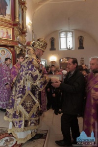 По окончании богослужения Глава митрополии поздравил всех прихожан с этим радостным историческим событием, напомнил, что идут святые дни поста, призывающие нас к покаянию. Владыка Герман сердечно поблагодарил всех наиболее потрудившихся для возрождения святыни и вручил награды: