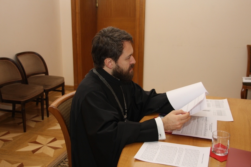 Митрополит Волоколамский Иларион возглавил заседание рабочей подгруппы по выработке общецерковного образовательного стандарта18 марта 2014 года состоялось заседание рабочей подгруппы по разработке общецерковного образовательного стандарта в рамках рабочей группы по выработке единого образовательного стандарта и оценке учебных пособий для бакалавриата духовных школ. Заседание возглавил председатель Отдела внешних церковных связей митрополит Волоколамский Иларион. В заседании приняли участие: первый заместитель председателя Учебного Комитета Русской Православной Церкви протоиерей Максим Козлов; проректор по учебной работе Московской духовной академии М.С. Иванов; проректор по научно-богословской работе Московской духовной академии протоиерей Александр Задорнов; ректор Коломенской семинарии епископ Константин (Островский); проректор по учебной работе Санкт-Петербургской духовной академии протоиерей Владимир Хулап; проректор по учебной работе Православного Свято-Тихоновского гуманитарного университета протоиерей Геннадий Егоров; заведующая кафедрой истории и теории языка ПСТГУ Л.И. Маршева; проректор Института теологии Белорусского государственного университета В.В. Акимов; ректор Смоленской духовной семинарии протоиерей Георгий Урбанович, проректор Общецерковной аспирантуры и докторантуры по учебной работе иеромонах Иоанн (Копейкин) и методист ОЦАД иеромонах Родион (Ларионов). В ходе заседания участники проанализировали действующие учебные планы ведущих семинарий Московского Патриархата и обсудили вопросы, связанные с работой над проектом общецерковного учебного стандарта. По итогам заседания был принят план дальнейшей работы над проектом общецерковного учебного плана бакалавриатов духовных школ. Проект должен быть представлен Священноначалию на ближайшем заседании Высшего Церковного Совета. *** Рабочая группа по выработке единого образовательного стандарта и оценке качества учебников для бакалавриата духовных школ была создана решением Высшего Церковного Совета 22 ноября 2013 года. Ее председателем стал председатель Отдела внешних церковных связей Московского Патриархата, ректор Общецерковной аспирантуры и докторантуры имени святых равноапостольных Кирилла и Мефодия митрополит Волоколамский Иларион. Рабочей группе было поручено разработать единый образовательный стандарт, примерные основные образовательные программы по дисциплинам, учебные планы для бакалавриата духовных учебных заведений; провести анализ перечня изданий, используемых семинариями в качестве учебников на предмет соответствия современным требованиям; установить перечень дисциплин, по которым необходимо подготовить учебники; создать план подготовки учебников и предложить механизм реализации этого плана.