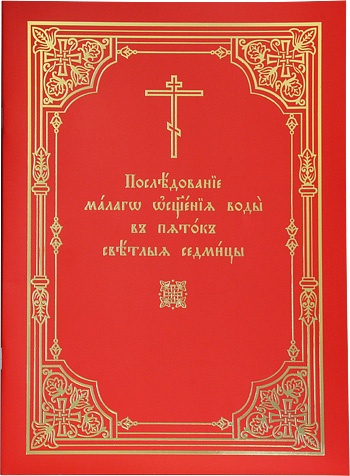 Вышло в свет «Последование малаго освящения воды в пяток Светлыя седмицы»Издательство Московской Патриархии выпустило в свет новое издание — «Последование малаго освящения воды в пяток Светлыя седмицы». Книга продолжает серию отдельных крупнокегельных аналойных изданий требных чинов. Чинопоследование, приведенное в книге, — возможный вариант совершения малого освящения воды в пятницу Светлой седмицы. Он отражает общераспространенную традицию совмещения чина водоосвящения с крестным ходом, ежедневно совершаемым после Литургии на Светлой седмице. Последование печатается в соответствии с Богослужебными указаниями на 2014 год. Текст набран шрифтом «Триодион» трех размеров: самый крупный — для архиерея/священника, средний — для диакона/чтеца, малый — пение хора. Книга (брошюра на скрепке) напечатана в две краски на офсетной бумаге. Мягкая обложка, матовая ламинация, тиснение золотой фольгой.