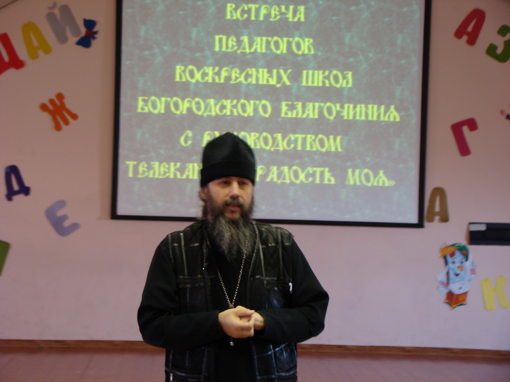 Состоялась презентация проекта «Закон Божий» телеканала «Радость моя» для воскресных школ22 марта в актовом зале православной гимназии имени священномученика Константина Богородского (Московская область) состоялась презентация просветительского медиа-проекта «Закон Божий: учебное пособие» семейного образовательного телеканала «Радость моя». На встрече присутствовали руководители и преподаватели воскресных школ всех приходов Богородского благочиния. Благочинный церквей Богородского округа протоиерей Михаил Ялов представил собравшимся одного из участников медиа-проекта А. Н. Рыжикова.