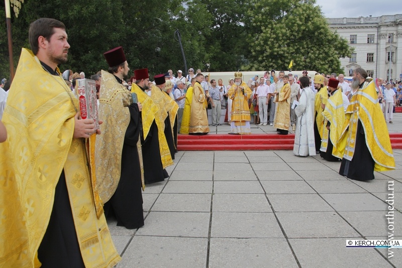 В Керчи появилась улица Андрея Первозванного21 июля 2013 года Керчь широко отмечала 1025-летие Крещения Руси — величайшего события в истории нашего народа. В этой связи городским руководством был снова поднят вопрос о присвоении Керчи статуса святоапостольского города, ибо в 65 году по Рождеству Христову святой апостол Андрей Первозванный прибыл в Боспор с проповедью Благовестия и насадил здесь зерно христианской веры, которое произросло великим древом по всей русской земле. В городе действует храм во имя апостола Андрея Первозванного, который зарегистрирован по Степному проезду, пишет блогер Константин Ходаковский. Прихожане храма через настоятеля храма протоиерей Николая Зинькова и благочинного города протоиерея Владимира Краплина обратились к городским властям с просьбой переименовать улицу в Андреевский проезд. 28 марта на 46 сессии Керченского горсовета 6 созыва прошение прихожан было удовлетворено по ранее принятому решению комиссии по наименованию улиц и объектов местного подчинения и комиссии за соблюдением Закона Украины «О свободе совести и религиозных организациях». После такого решения были изготовлены специальные уличные указатели. Теперь адрес храма: улица Андрея Первозванного,2. В честь переименования улицы в городе прошли торжества, которые возглавил архиепископ Керченский Анатолий.