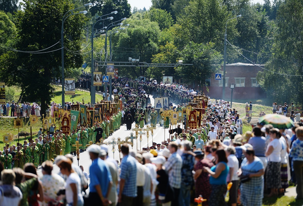 Из подмосковного Покровского Хотькова ставропигиального монастыря, где пребывают мощи преподобных Кирилла и Марии — родителей святого Сергия, прошел многотысячный крестный ход на Благовещенское поле Сергиева Посада.