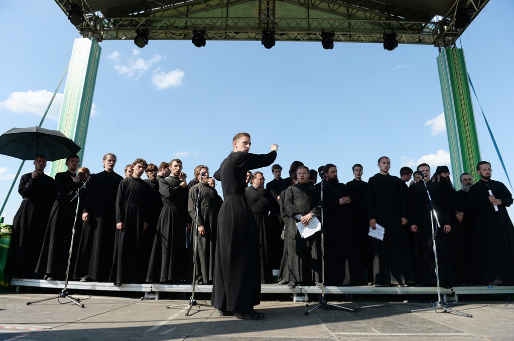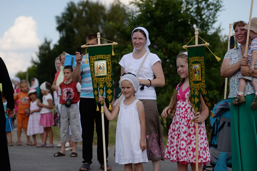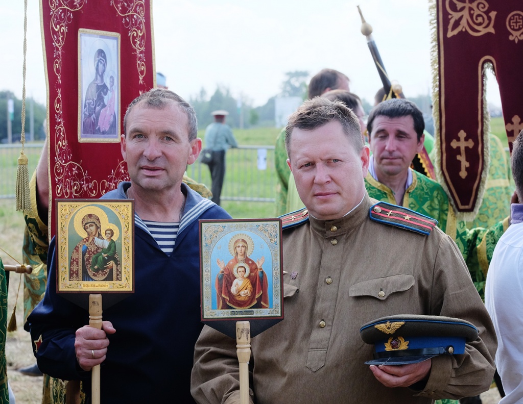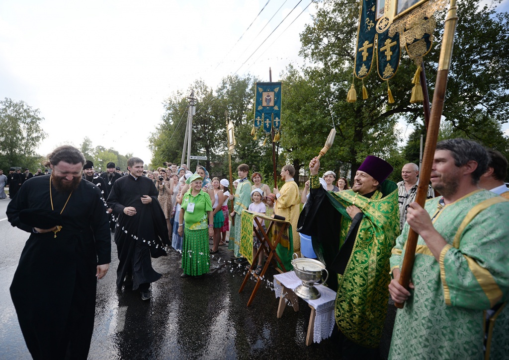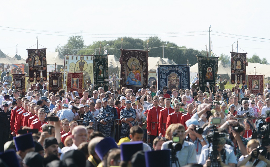 Вблизи палаточного городка, развернутого на Благовещенском поле, организовано место для совершения богослужений. После прибытия сюда керстного хода Предстоятель Русской Церкви совершил молебное пение, была прочитана молитва преподобному Сергию Радонежскому.