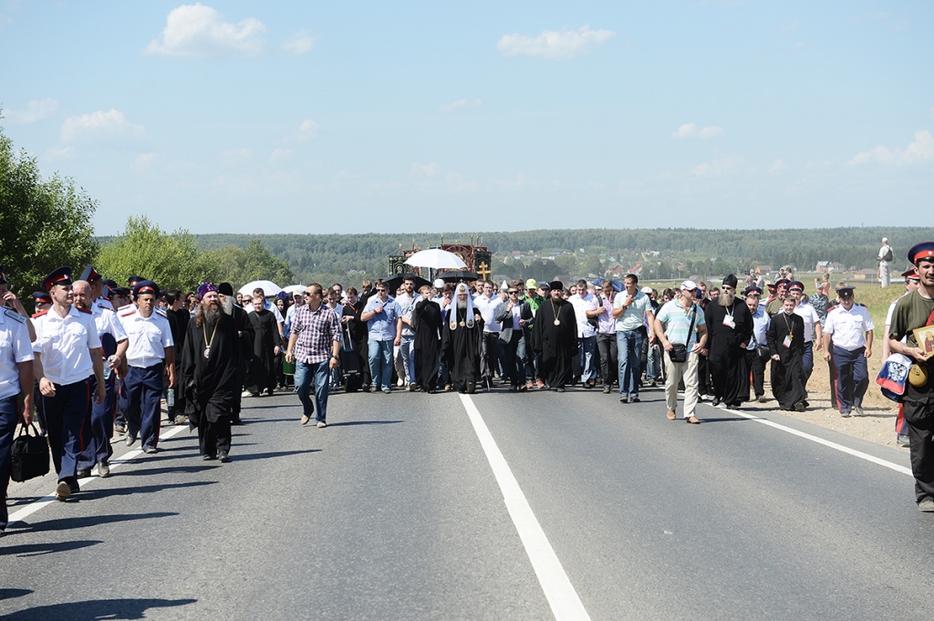 Для многих сегодняшний путь был чем-то особенным, чего они не переживали в жизни. Это было не просто шествие, не просто пешеходный маршрут, не просто поход — это был крестный ход, сопровождавшийся непрестанной молитвой. Хотел бы сердечно поблагодарить хоры, которые исполняли беспрерывно великие песнопения Церкви нашей, помогая ум настроить на молитву. И верим, что молитва во время этого крестного хода достигает и достигла Престола Божия, и преподобный Сергий, авва наш, слышал ее.
