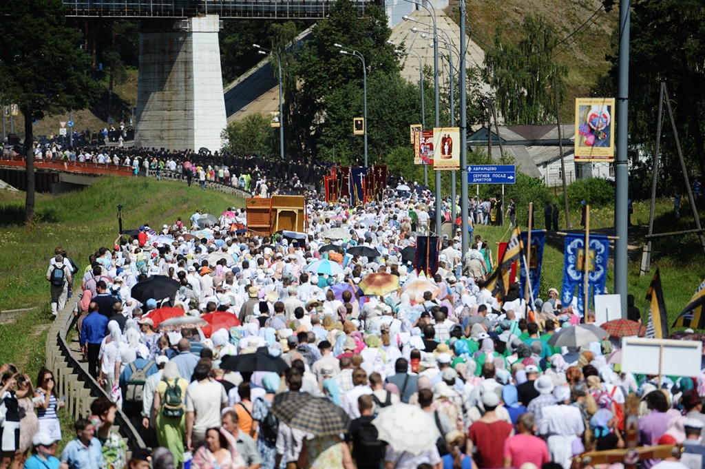 Но если вспомнить давно прошедшие времена, то для людей было обычным делом идти пешком в Сергиев Посад из града Москвы. Мы прошли небольшую часть того пути, который проходили наши благочестивые предки, но могли почувствовать сердцем великую благодать. А что, собственно говоря, произошло? А ничего особенного. Люди XXI века, живущие в относительном или даже полном комфорте, приняли решение, несмотря на жару, идти пешком. Кто-то рационально мыслящий скажет: а зачем это надо? Ох как надо, потому что именно в подвиге, в который вовлекается не только душа, но и тело, проверяется наша духовная сила. В ответ на этот подвиг Господь слышит нашу молитву и дает просимое. Вот почему мы совершаем земные поклоны, вот почему мы держим пост, идем многокилометровыми крестными ходами, вот почему мы стоим на относительно продолжительных богослужениях. Потому что Бог принимает нашу маленькую физическую жертву, небольшую лепту, и в ответ на наш подвиг дает просимое.