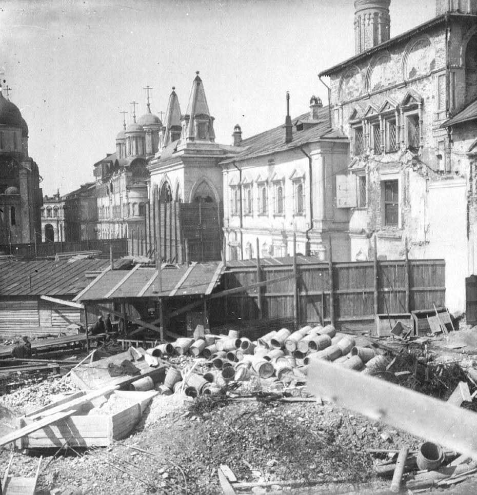 Чудов монастырь. XIX, XX и … XXI века?Разрушение монастыря - очень тяжёлая архитектурная рана Кремля, наверное, самая тяжёлая его утрата в XX веке. Владимир Путин подчеркнул, что такой план может быть реализован только после одобрения общественностью и ЮНЕСКО, сообщает «Интерфакс». Президент полагает необходимым «проработать этот вопрос, чтобы спокойно, основательно подойти к решению этой задачи, если ее сочтут целесообразной». Владимир Путин добавил, что знает, насколько чувствительны подобные вопросы для архитекторов и специалистов. В свою очередь, вице-президент Российской академии художеств Дмитрий Швидковский заявил журналистам, что вопрос о восстановлении исторических зданий на месте бывшего 14-го корпуса пока еще находится в стадии решения. По его словам, проект необходимо разработать, согласовать с ЮНЕСКО, и это займет не меньше года — двух лет. Сергей Собянин также отметил, что решение о сносе 14-го корпуса и создании на его месте сквера с возможным последующим восстановлением существовавших здесь ранее памятников архитектуры находится «в одной логике решений, которые принимаются в последние годы». Мэр столицы пояснил, что «речь идет о том, что Красная площадь, дом 5 передан ФСО музеям Кремля, Зарядье отдано под парк, Никольская улица сделана пешеходной, Маросейка тоже становится практически пешеходной — все это создает огромную туристическую зону».