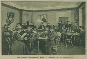 Уже к концу XIX столетия в Российской империи существовало порядка ста подобных учреждений. Объединял их главный принцип, заложенный отцом Иоанном Кронштадтским: нуждающиеся могли получить работу для того, чтобы на заработанные средства обеспечить себя всем необходимым. Кадровые агентства и бухгалтерские курсы В то же время каждое из этих учреждений имело свои особенности; например, при некоторых из них действовали некие прообразы кадровых агентств – справочные отделы, в которых собирались и предоставлялись по запросам сведения об ищущих работу и местах, где эту работу можно было получить. Так, в Кронштадте приходское Андреевское попечительство, обеспечивавшее деятельность первого в России Дома трудолюбия, открыло посредничество по найму прислуги; подобные посредничества в нескольких городах также предоставляли бесплатные услуги образованным женщинам, владеющим навыками машинописи и иностранными языками. В некоторых Домах трудолюбия люди в течение определенного срока жили на полном пансионе, им предоставлялись жилье и одежда (иногда на благотворительных началах, иногда – за определенную долю заработка). Освоив какое-либо ремесло и получив работу за пределами Дома трудолюбия, человек покидал его, имея в качестве начального капитала для устройства жизни деньги, полученные за работу в мастерских этого учреждения. Обычно, помимо собственно работы, для трудолюбцев (так называли людей, находящихся под опекой Дома трудолюбия) организовывали профессиональное обучение, им также предоставляли возможность получить начальное образование. Обедневшие ремесленники, лишившиеся необходимых инструментов и не имевшие даже возможности купить сырье, могли получить все необходимое для работы в Доме трудолюбия и оплатить затраты уже после получения прибыли. Особые задачи решал еще один открытый попечением отца Иоанна Кронштадтского Дом трудолюбия: он был создан в 1896 году в Санкт-Петербурге для обедневших образованных женщин. Наиболее нуждавшимся из них предоставлялись бесплатные обеды и одежда, а также жилье. Уже в первые месяцы после открытия здесь работало около пятидесяти женщин; более двух десятков трудолюбиц по непродолжительном времени получили постоянные места в банках и различных конторах. Для того, чтобы женщин и девушек подготовить к будущей работе, в Доме трудолюбия открыли различные курсы, на которых желающие обучались машинописи и навыкам снятия копий с помощью гектографа и милиографа, фальцовке и брошюровке печатных изданий, теории и практике кройки и шитья по системе Базаровой, изящному рукоделию, живописи по стеклу, бархату и атласу и даже изготовлению кукол. Желающие также получали навыки корректуры, практиковались в переводах с пяти языков: французского, немецкого, английского, испанского и итальянского. Уже в первый год работы петербургского Дома трудолюбия пятнадцать женщин окончили курсы бухгалтеров и с отличием сдали экзамен. *** В 1917 году Дом трудолюбия в Кронштадте был закрыт, а храм, построенный при нем, разорен. Позже в этом здании разместилось профессионально-техническое училище. Схожая судьба постигла все другие Дома трудолюбия на территории страны, и только в последние годы то тут, то там слышишь о начинаниях, в основе которых – универсальный принцип помощи, предложенный Кронштадтским пас