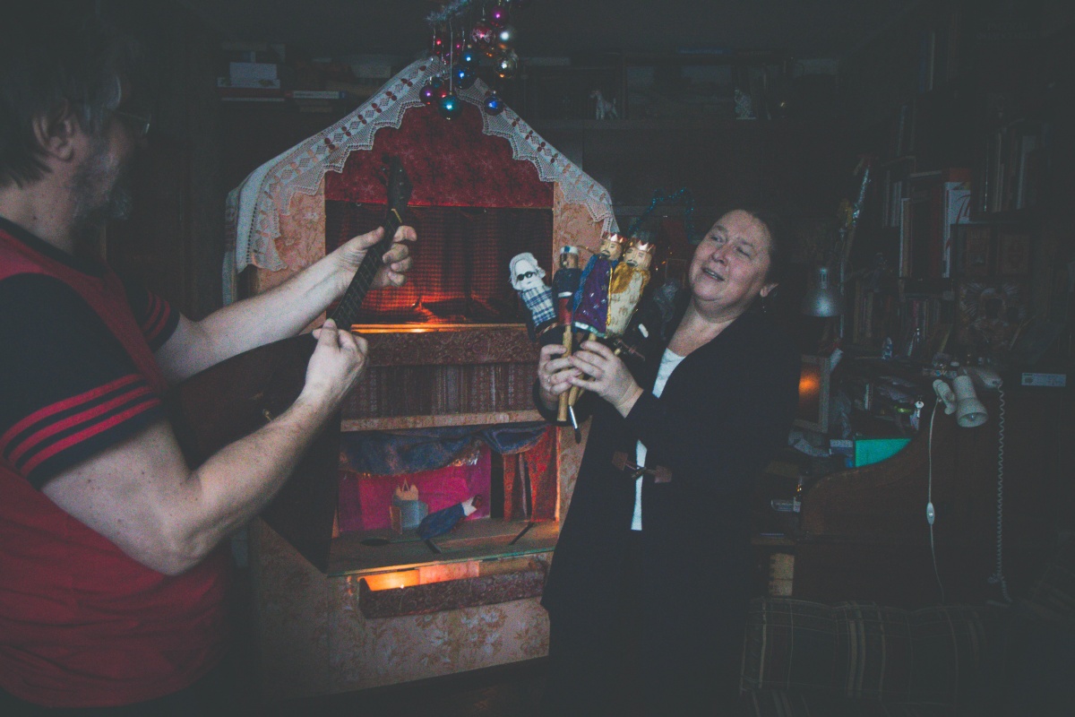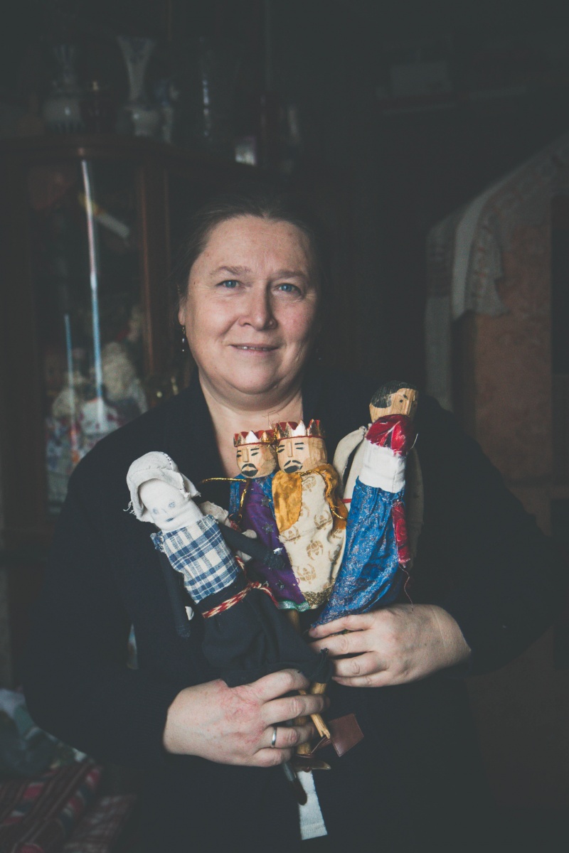 Было много вопросов: как это театральное действо игралось? Есть коробка, есть разрозненные куклы, есть картинки, есть текст, есть воспоминания… Как этот текст заживет, как это все соединится в мистерию Рождества? Мистерия – западное слово, а по-русски – Таинство. Чтобы понять, как разговаривают куклы в вертепном театре, как они двигаются, Виктор Исаевич Новацкий организовывал этнографические экспедиции. Мы ездили в Юго-западную Россию, на Западную Украину, туда, где еще играли вертепы, пели колядки.