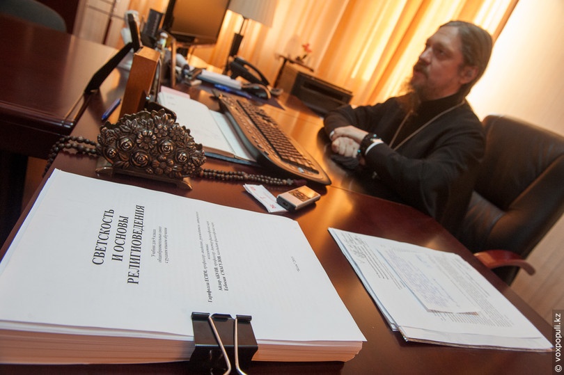 Когда ты не встречаешь представителей других религий, то постепенно теряешь навык общения с ними. Люди начинают домысливать всякие глупости о представителях других религий, создавать в фантазии образ чужого человека или даже врага. Когда в одной школе учатся и работают представители разных религиозных течений, возникает доверие между людьми. Человек начинает понимать другого человека и не враждует с ним. Наши священнослужители регулярно налаживают контакты с представителями исламского мира. Глава Казахстанского Митрополичьего округа часто встречается с Верховным муфтием, обсуждая сотрудничество. Мы также периодически беседуем с имамами, обсуждая теологические вопросы. Так мы больше узнаем друг о друге.