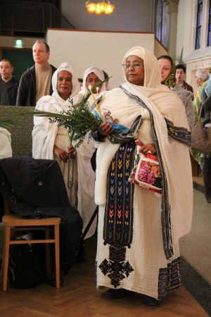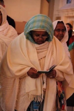 Вот, например, у нас есть эритрейские женщины – их достаточно много, 20-30 человек бывает на службе. Это темнокожие женщины в белых ослепительных одеяниях, которые очень строго соблюдают форму одежды для посещения церкви. Раньше они даже обувь снимали при входе – в старой церкви, где пол был деревянный. Сейчас в новом храме каменный пол, снимать обувь холодно.