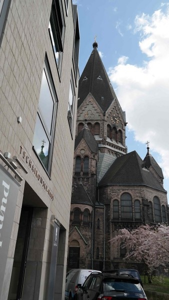 Однако, проблема заключалась в том, что была очень высокая арендная стоимость. Это помещение представляло собой спортивный зал в лютеранском детском садике. По договору за него нужно было платить полторы тысячи евро в месяц. В 2003 году ваш покорный слуга был назначен в Гамбург. Главным делом моего служения стал поиск нового помещения. Господь нас щедро утешил тем величественным собором, где община располагается ныне. На тот момент это был храм Лютеранской Церкви, но богослужебная жизнь в нем практически сошла на нет. Для нас же этот храм был интересен тем, что помимо того, что он находится в центре города, по своей архитектуре он не типичен для лютеранских северогерманских храмов, так как в свое время строился для армянской общины. Архитектор Лоренце учился в Тифлисе и свою любовь к кавказской архитектуре воплотил в этом проекте. Тут конечно не только Кавказ угадывается. Это неороманский стиль с элементами готики. При этом сохраняется крестово – купольная система, с большим алтарем, что опять же, нетипично для лютеран, но было желательно армянам и оказалось радостным сюрпризом для нас. На стадии согласования проекта с городом, армянская община от строительства отказалась, но архитектор убедил синод Лютеранской Церкви реализовать проект. Одним из аргументов было то, что присутствующая в проекте система круга, по мысли архитектора, наиболее соответствует лютеранскому пониманию проповеди слова Божия. Ведь длинные соборы для органов и помпезных служб. А лютеранам важно слово и люди собираются вокруг пастыря.