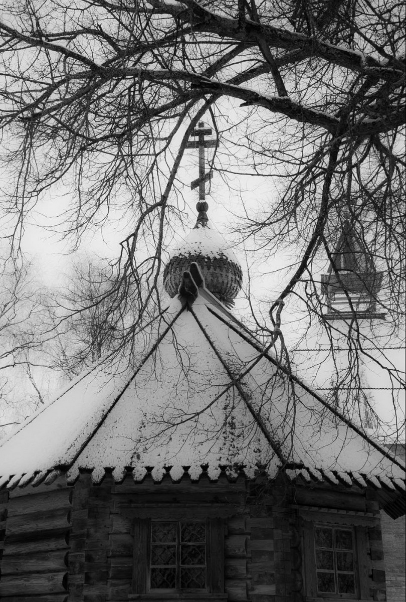 Увы, у меня о русском севере живых впечатлений немного, последнее яркое воспоминание связано с поездкой в Вёрколу, это село на Пинеге. Во-первых, это родина святого Артемия Веркольского. А потом, там родился советский писатель Федор Абрамов, писатель-деревенщик. Село стоит на коренном берегу реки, и там еще сохраняется немало старых северных домов, огромных, с крытыми дворами. Но уже даже починить такой дом, реконструировать, совершенно невозможно, потому что надо бревно метров двадцать подвезти и поднять. Это делалось, вообще-то, на раз, когда сохранялась традиция т. н. русских «помочей». Сейчас же никого уже не собрать. Поэтому там лепят какие-то времяночки, типа дач, смешные избушки, особенно рядом с этими колоссальными исполинами.