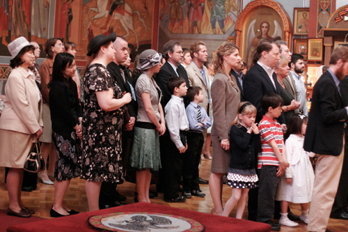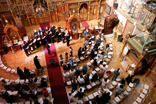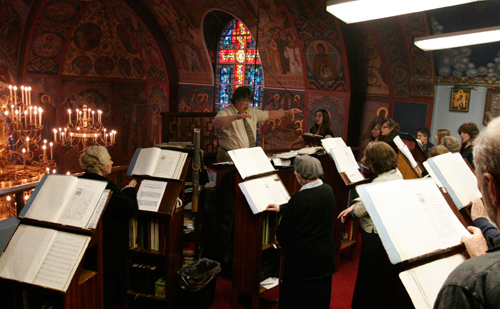 кафедральном соборе поет архиерейский хор, которым руководит Владимир