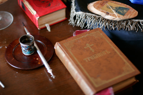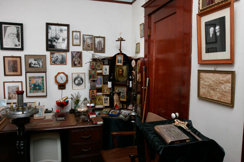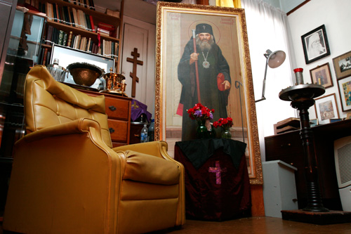 На аналое в келье свт. Иоанна всегда лежат крест и Евангелие, здесь принимается исповедь