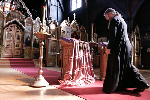 хранится на центральном аналое Старого собора. Молящийся больной встает