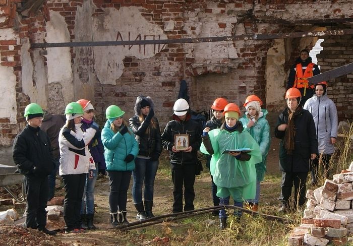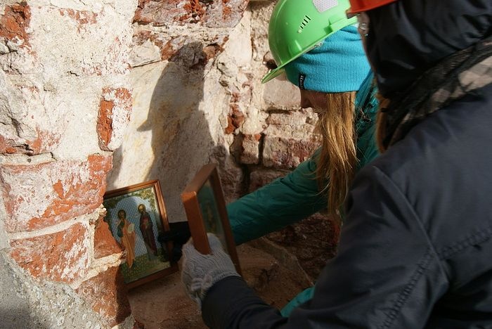 Когда мы были в затопленном Христорождественском храме в Крохино, мне запомнилось, как наша актриса Алина Ерантаева прочитала молитвы Николаю Чудотворцу и святым Петру и Павлу, и мы оставили в одной из храмовых ниш иконы этих святых. Тогда же обсуждали с детьми, уместны ли иконы в разрушенном храме? Расхождений во мнении не было: «Ну, это ж всё равно храм. Только разрушенный».