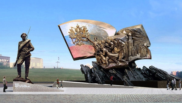 Российское военно-историческое общество, председателем которого является Владимир Мединский, стало организатором установки в Москве на Поклонной горе памятника героям Первой мировой войны — к столетию ее начала, 1 августа 2014 года. Победил проект скульптора Андрея Ковальчука. Его работа встанет между Триумфальной аркой и музеем Великой Отечественной.