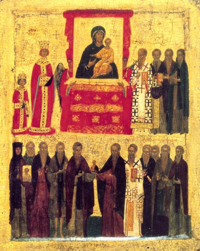 Этот день, Торжество Православия, связан с воспоминанием о сокрушении ереси иконоборчества, когда благочестивая Царица Феодора вместе с верными Православию епископами защитила истину иконопочитания. Этот догмат является как бы печатью всех догматов, он свидетельствует о тайне Воплощения Божия, о том, что Бог стал видимым человекам, и может быть изображаем. Этим изображениям мы не можем не поклоняться, мы молимся перед ними, целуем их и получаем от них освящение и исцеление. Бог стал человеком, и человек верностью истине может приобщиться Божественной жизни, и стать вовеки живым. Потому святая Церковь анафематствует сегодня не только ересь иконоборчества, а все лжеучения, каждое из которых — духовная смерть. Где нет истинной веры, там нет спасения. И все, кто принял Божественное помазание во святом крещении, — не только священники и епископы, — призваны различать малейшее уклонение от путей жизни.