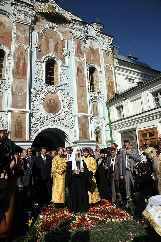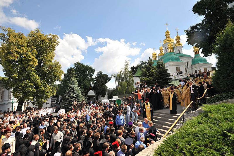 Сотни людей причащаются из нескольких чаш. Патриарх и Блаженнейший опять говорят друг другу о единстве – но после этих чаш слова их тем более воспринимаются как само собой разумеющееся. Разве может быть иначе?! Это же Лавра. После литургии вся она наполняется оживленной суетой – от ворот к пещерам, от ближних − к дальним, а вот в том храме еще не были, взять воды из источника, получить иконку с Патриаршим благословением, ну, и слава Богу за всё. Наш Патриарх приехал, наш Блаженнейший его принимает и приветствует, це так.